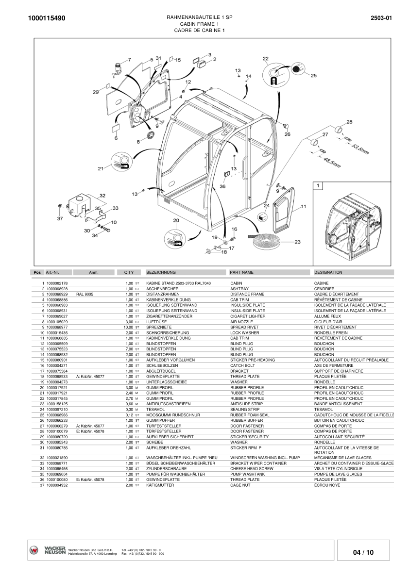 Wacker Neuson 2503 Crawler Excavator Parts Catalog Rev 2