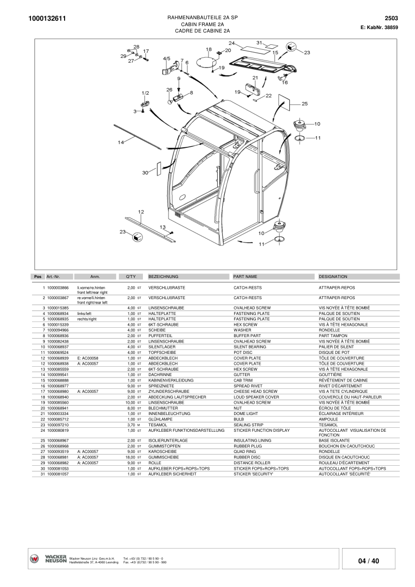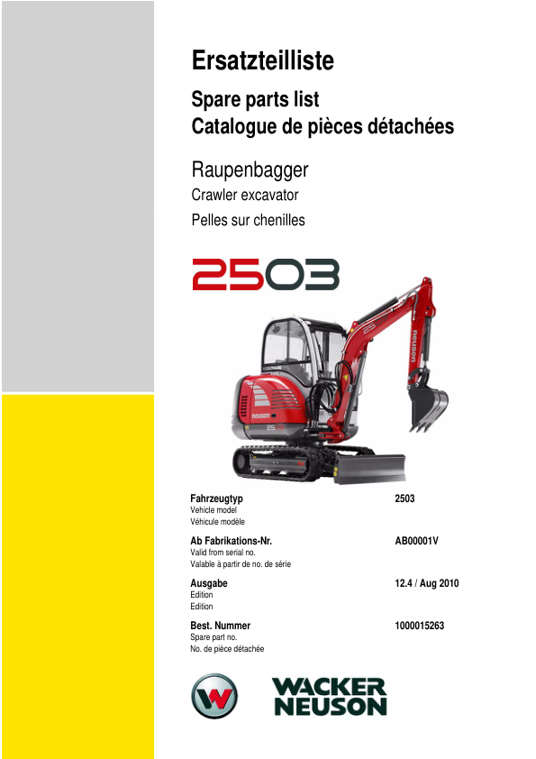 Wacker Neuson 2503 Crawler Excavator Parts Catalog