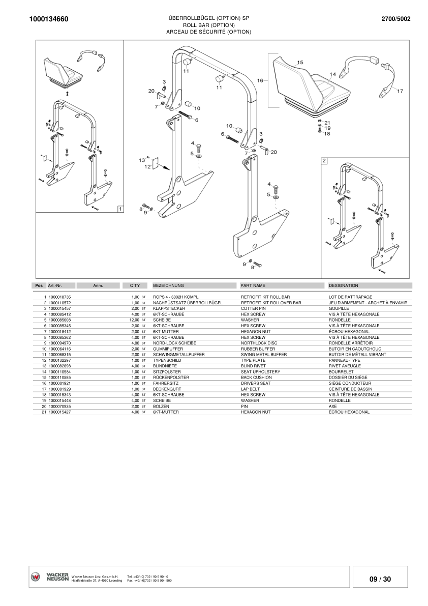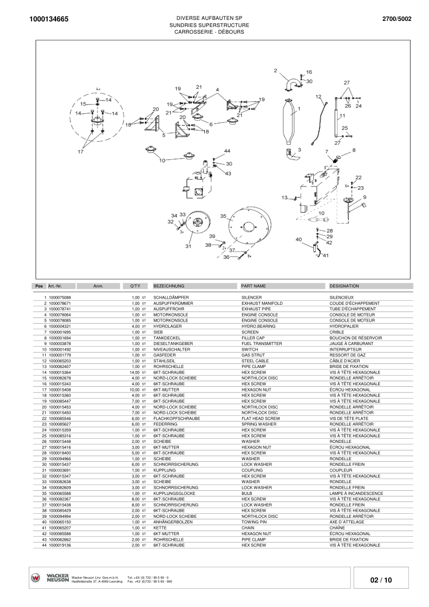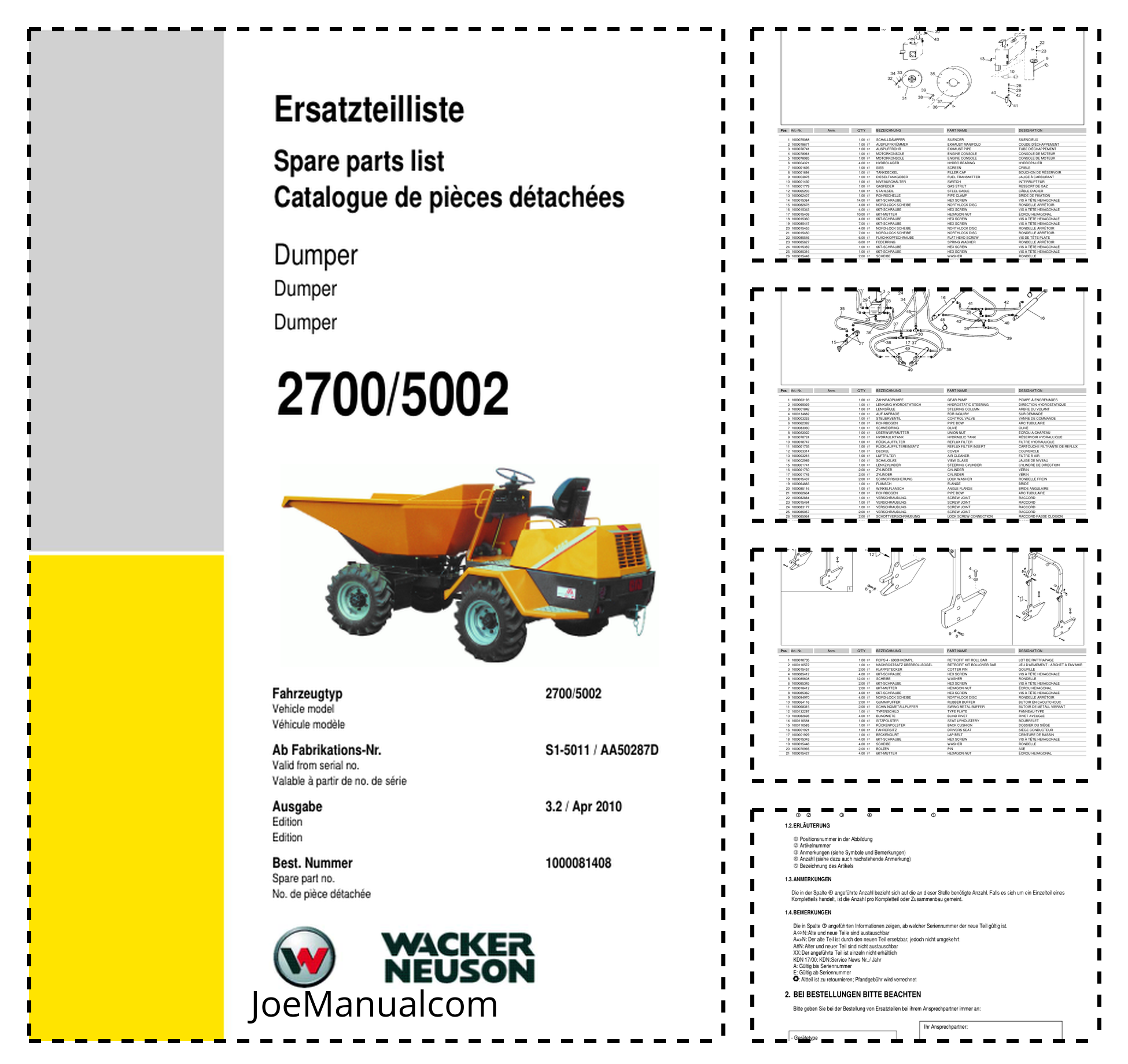 Wacker Neuson 2700 5002 Dumper Parts Catalog S1-5011 AA50287D v3.2