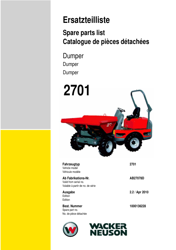 Wacker Neuson 2701 Dumper Parts Catalog Rev 04-2010
