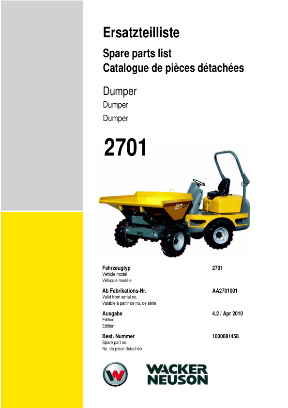 Wacker Neuson 2701 Dumper Parts Catalog SN from AA2701001 v4.2