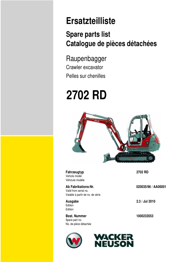 Wacker Neuson 2702RD Crawler Excavator Parts Catalog