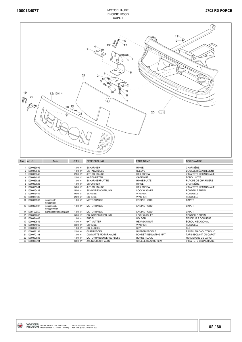 Wacker Neuson 2702RD Force Crawler Excavator Parts Catalog