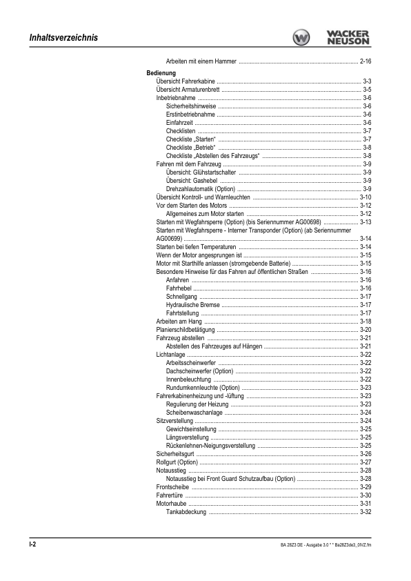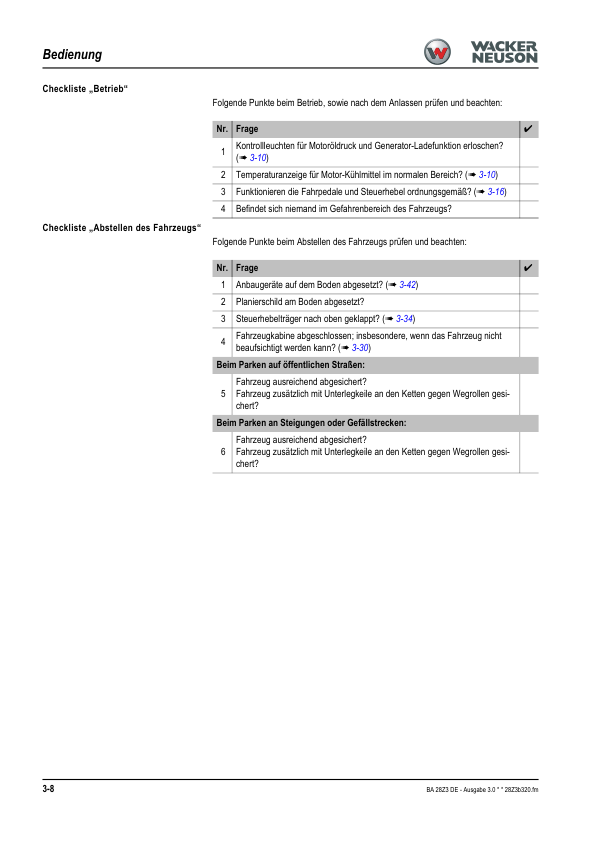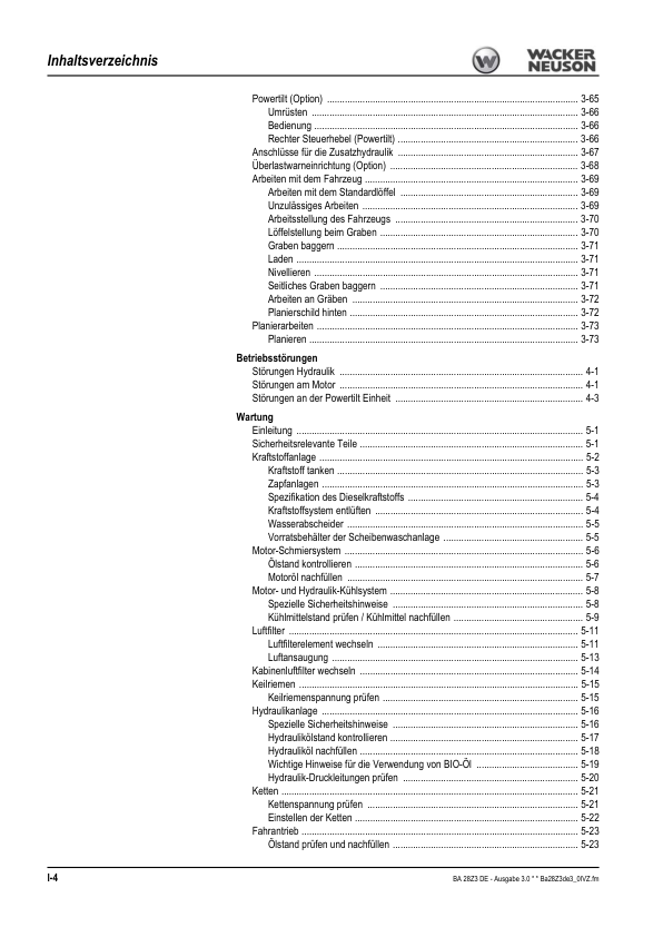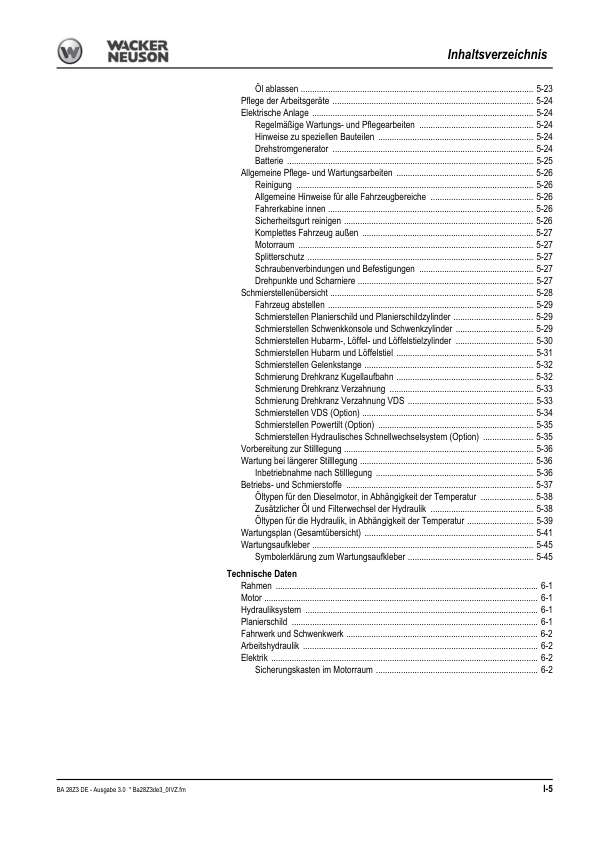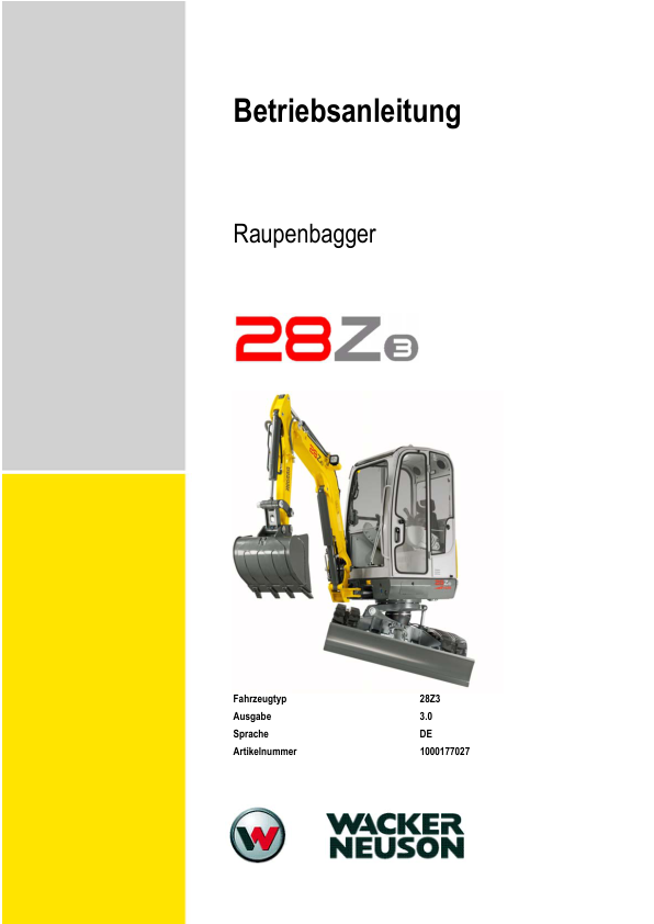Wacker Neuson 28Z3 Mini Excavator Operators Manual DE