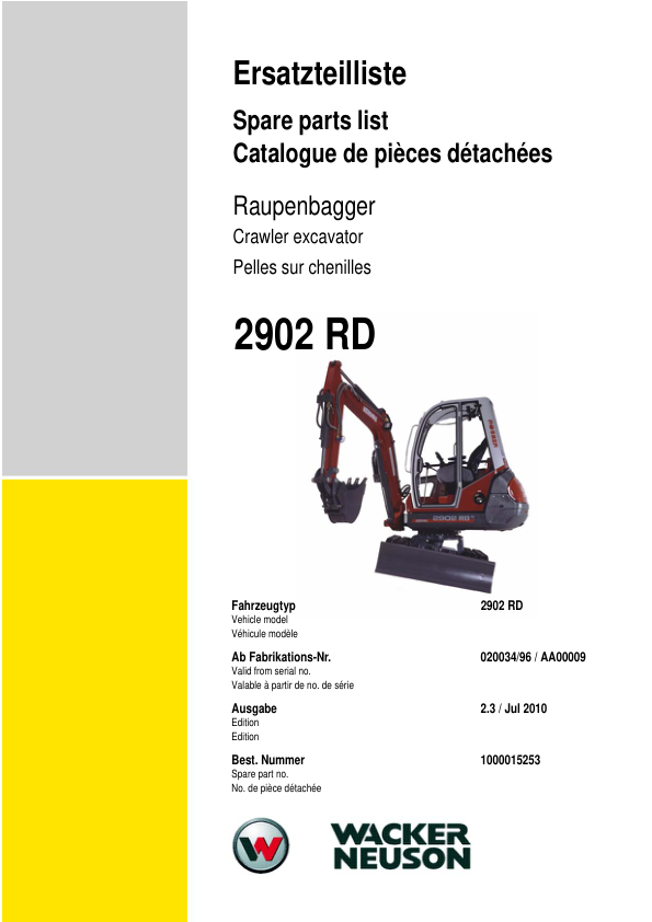 Wacker Neuson 2902RD Crawler Excavator Parts Catalog
