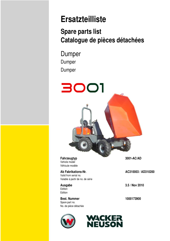 Wacker Neuson 3001 Dumper Parts Catalog Rev 11-2010-2