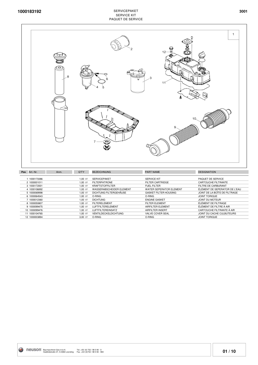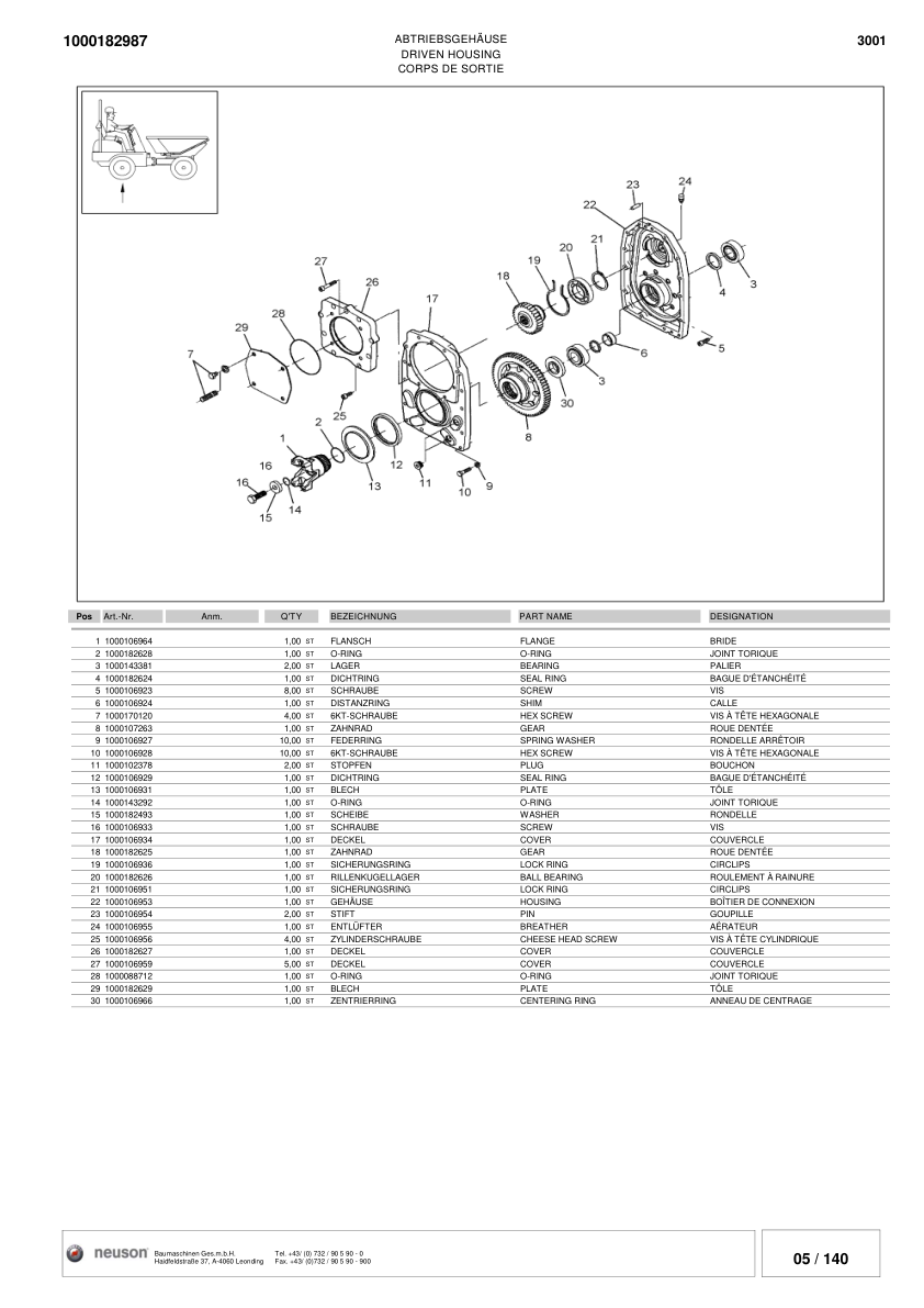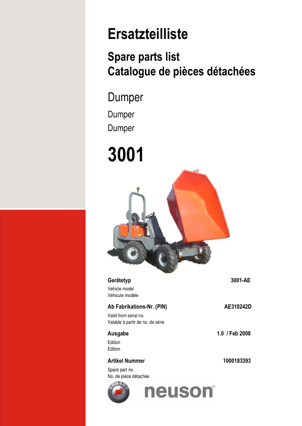 Wacker Neuson 3001 Dumper Parts Catalog SN from AE310242D v1.0