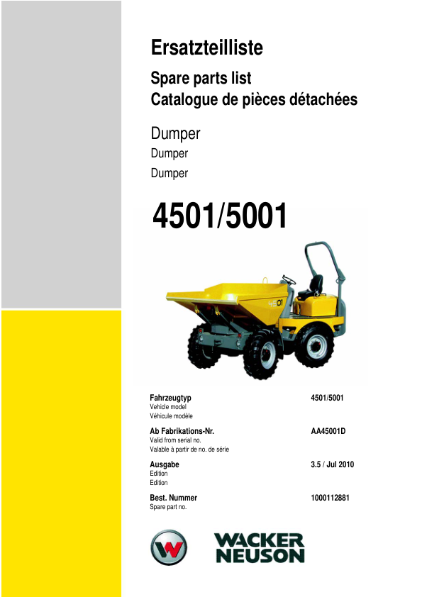 Wacker Neuson 4501 5001 Dumper Parts Catalog