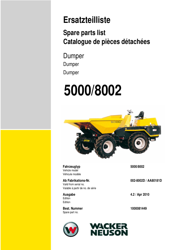 Wacker Neuson 5000 8002 Dumper Parts Catalog