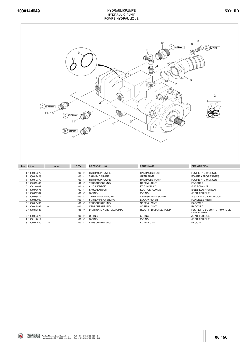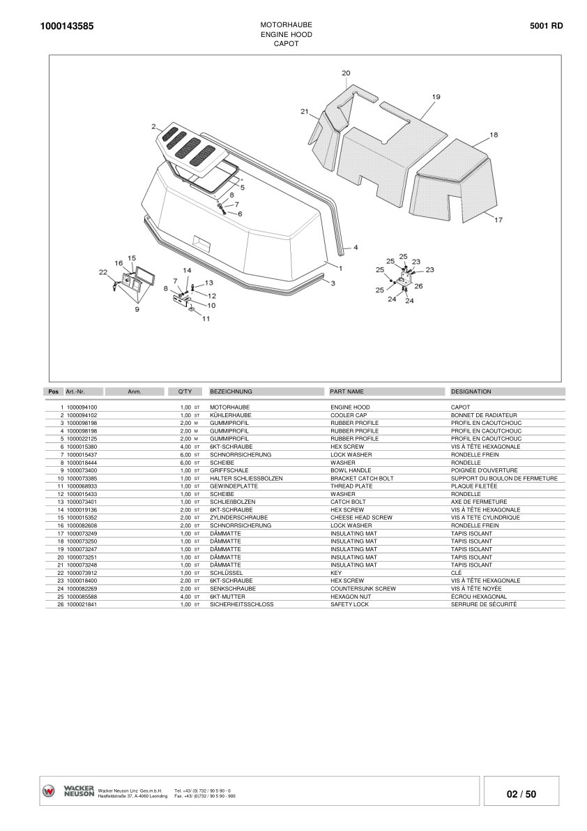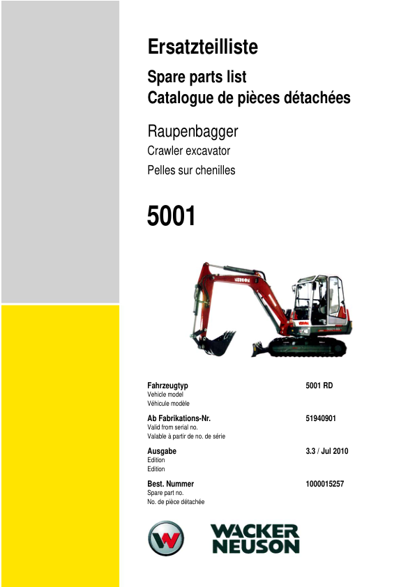 Wacker Neuson 5001 Track Excavator Parts Catalog 51940901