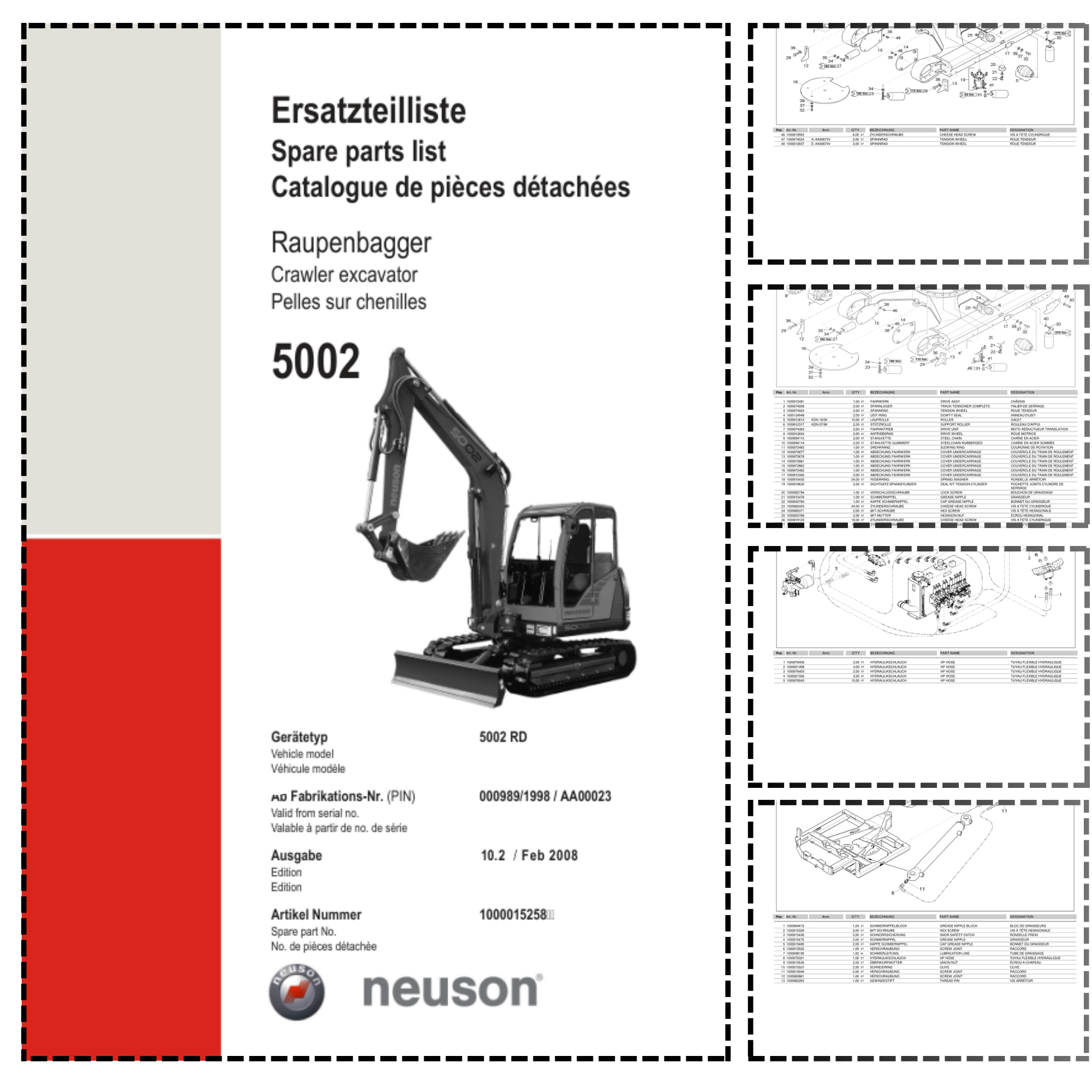 Wacker Neuson 5002 RD Excavator Parts Catalog SN from 000989/1998 AA00023 v10.2