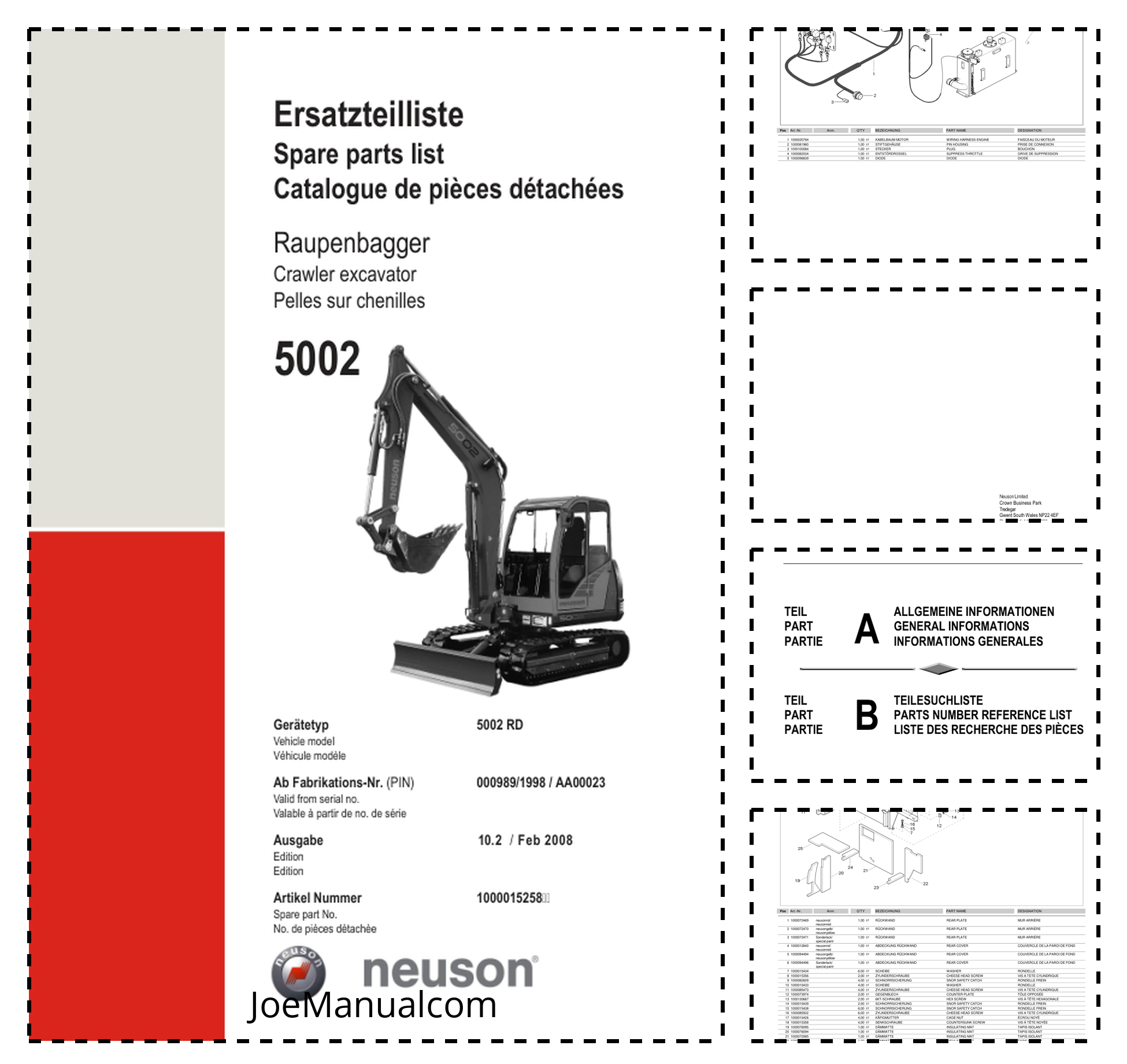 Wacker Neuson 5002RD Excavator Parts Catalog SN from 000989 1998 AA00023 v10.2