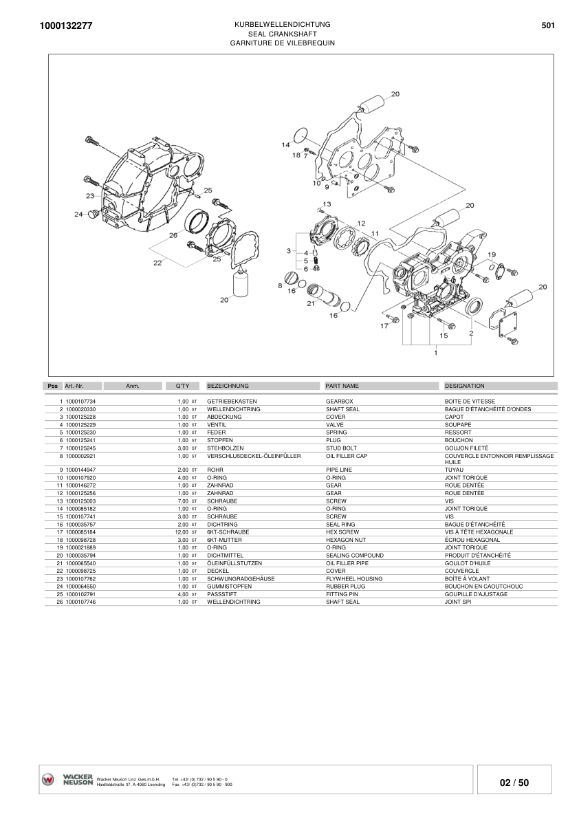 Wacker Neuson 501s Skid Steer Loader Parts Catalog Rev 4.6