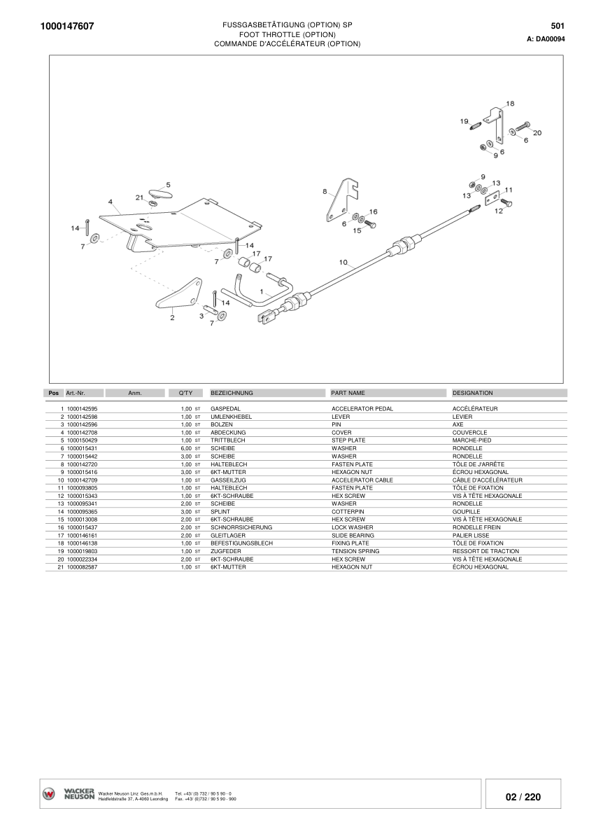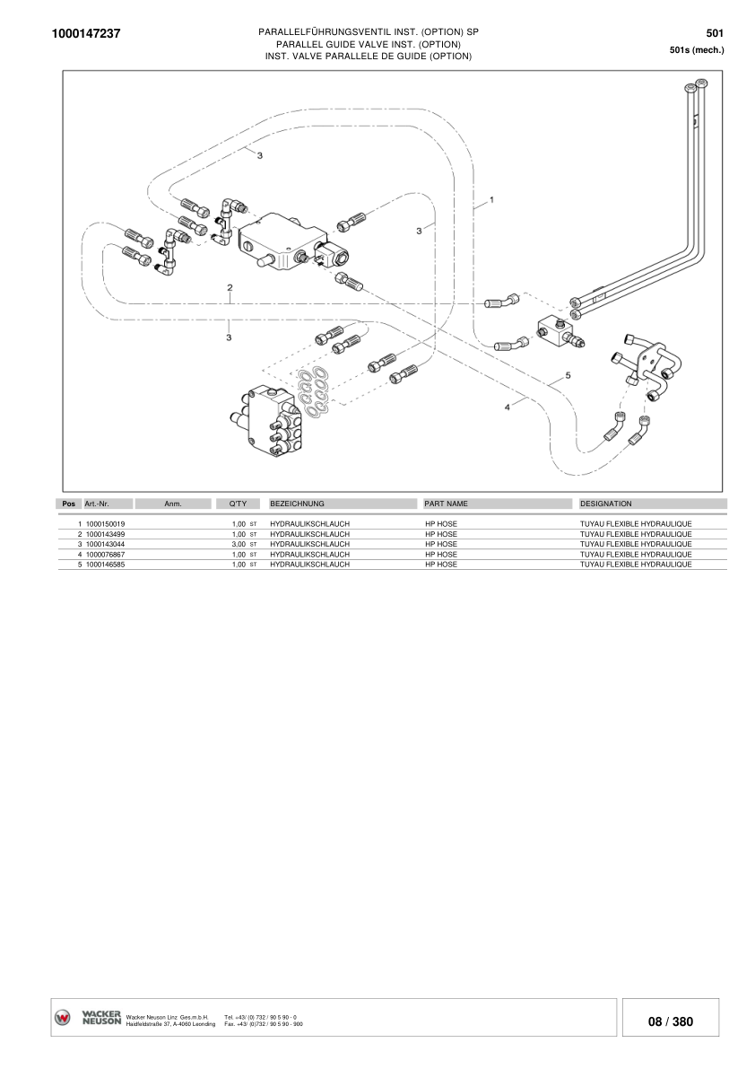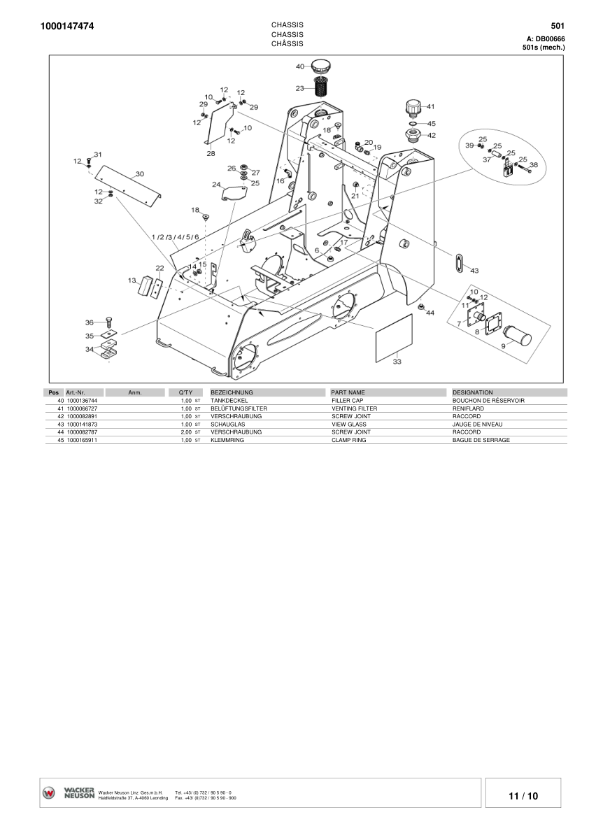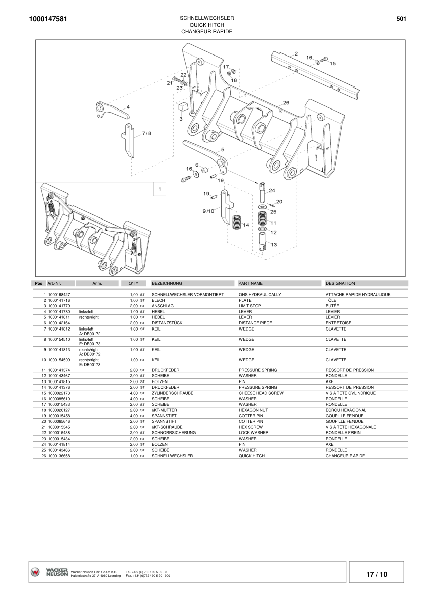 Wacker Neuson 501S Skid Steer Loader Parts Catalog SN from DA00010 DB00112 v4.5
