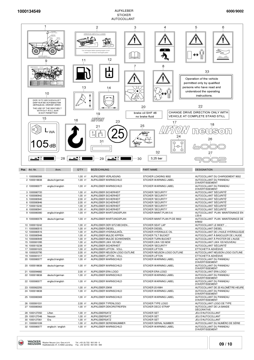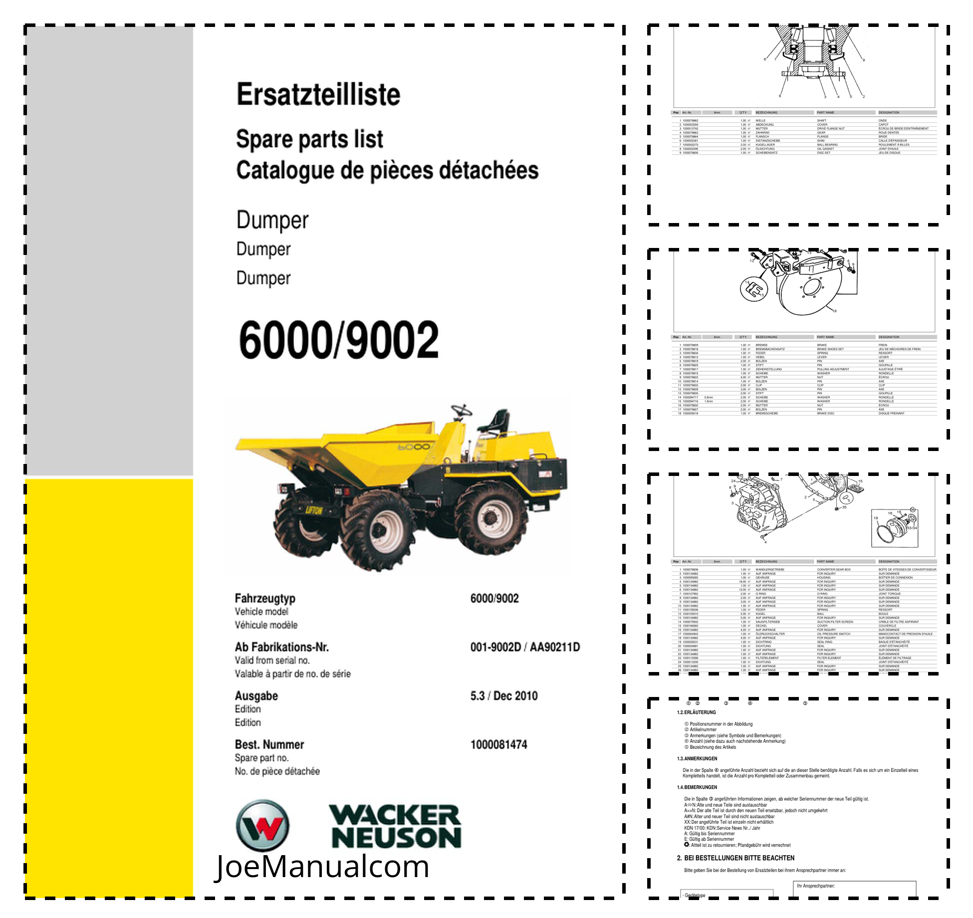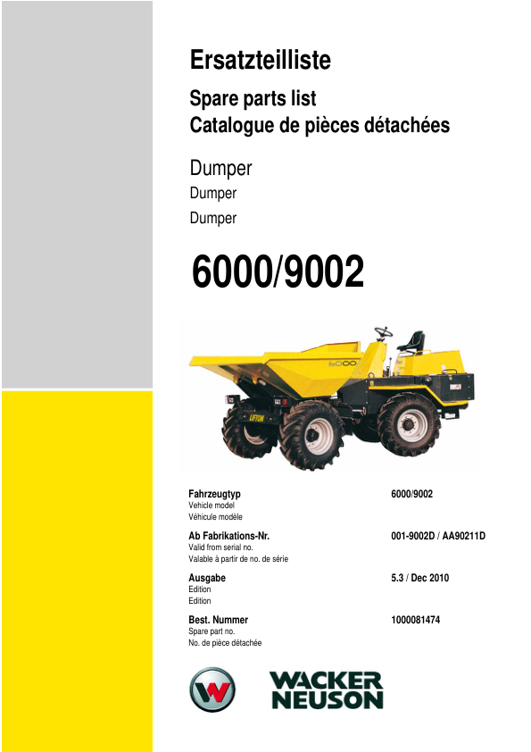Wacker Neuson 6000 9002 Dumper Parts Catalog