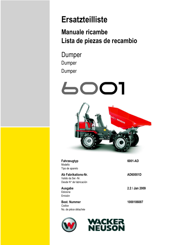 Wacker Neuson 6001 Dumper Parts Catalog SN from AD60001D v2.2