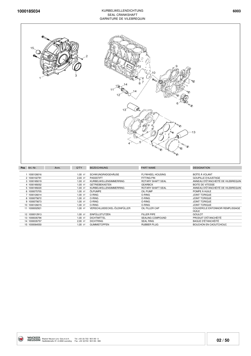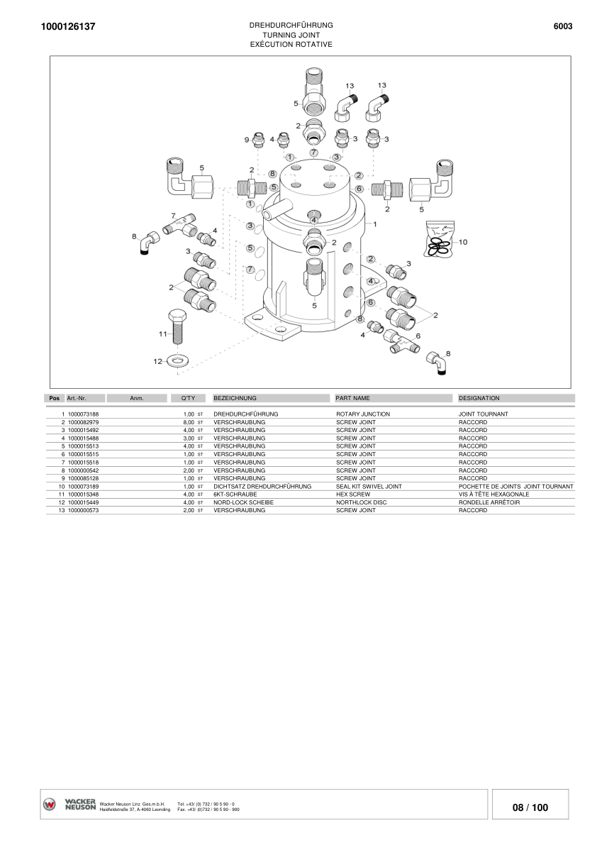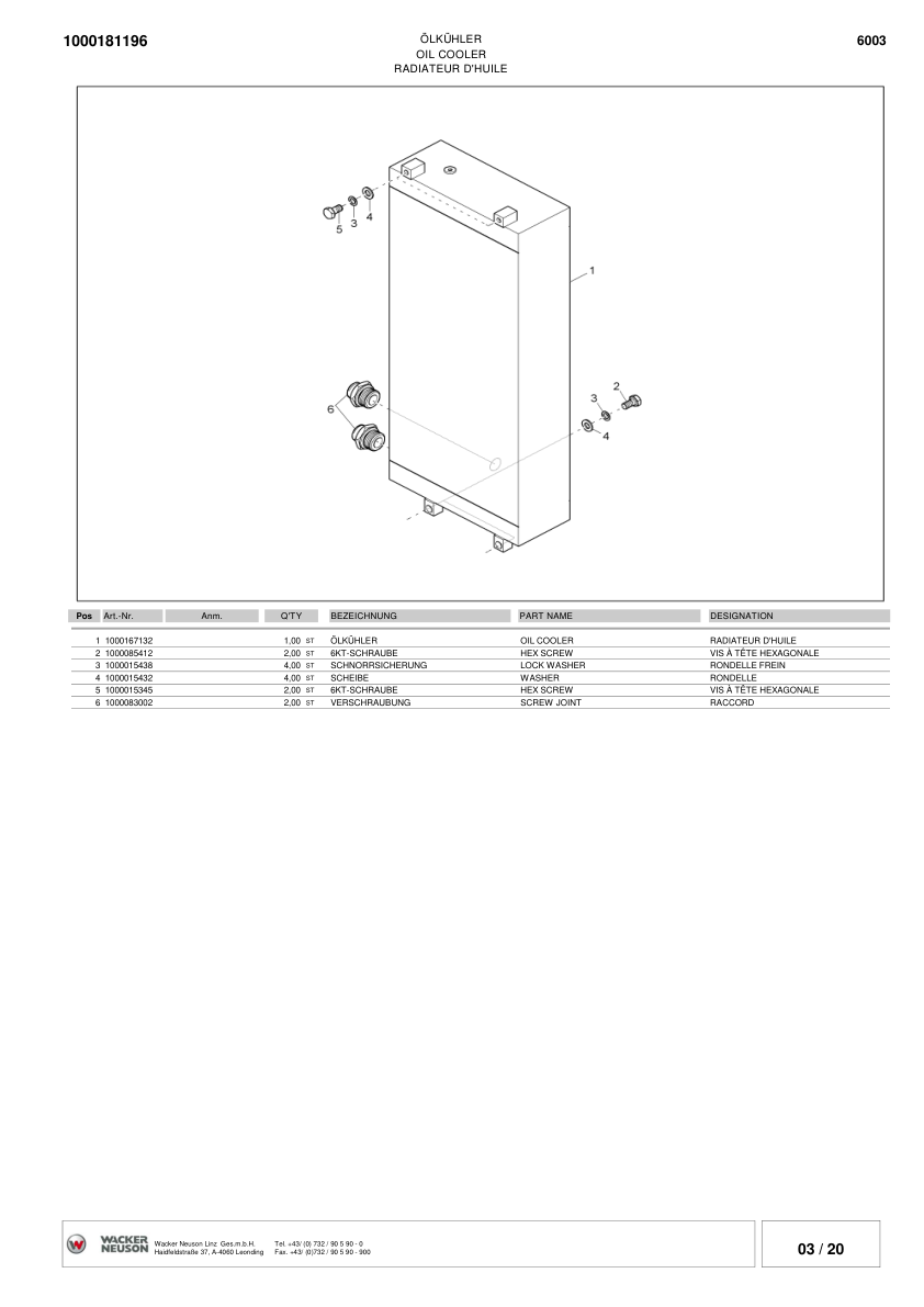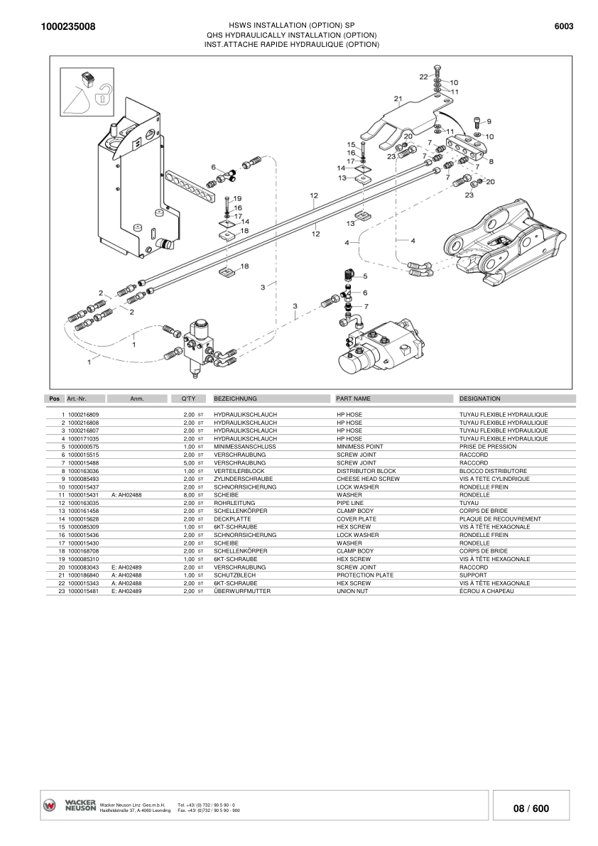Wacker Neuson 6003 Track Excavator Parts Catalog AH00645