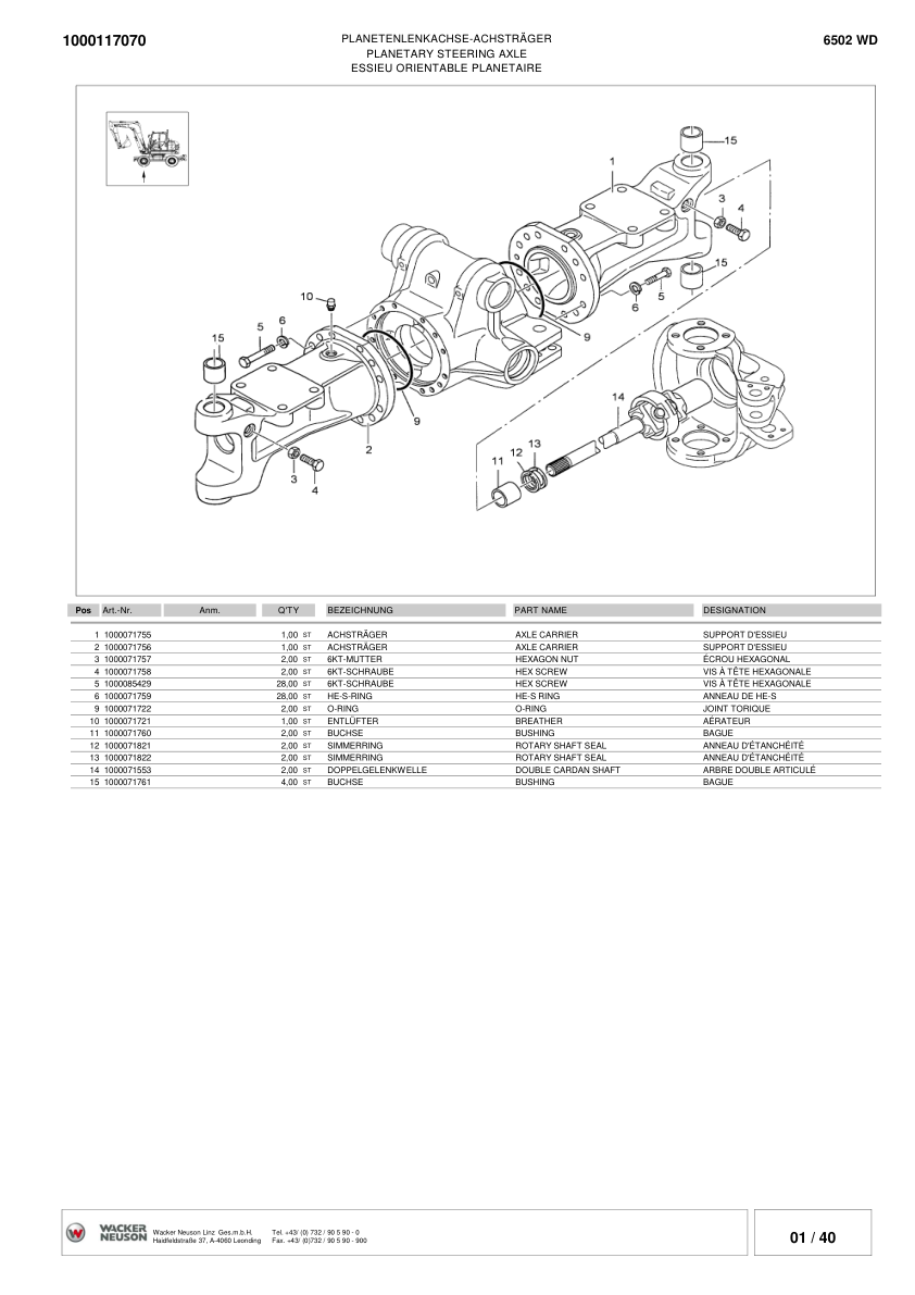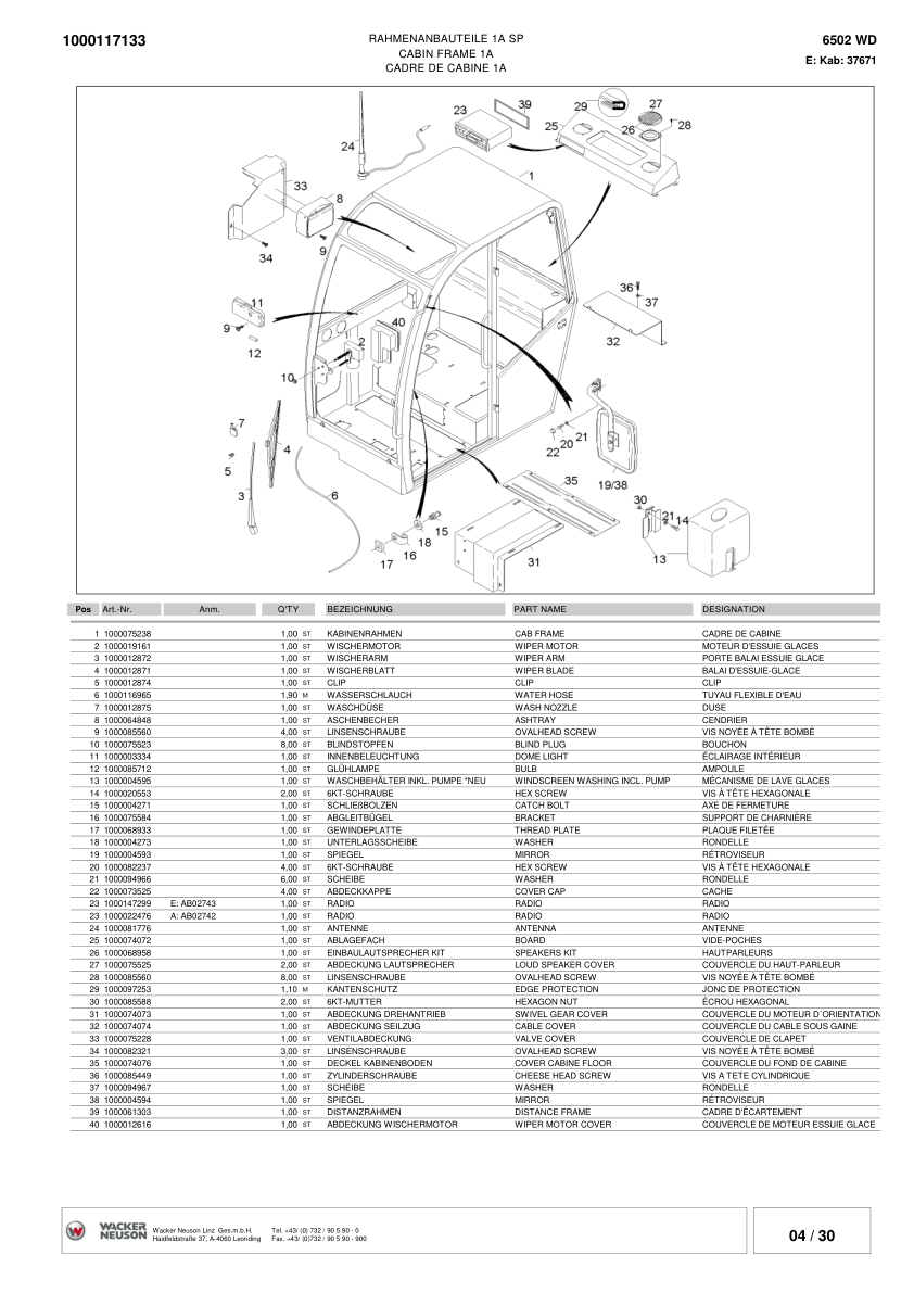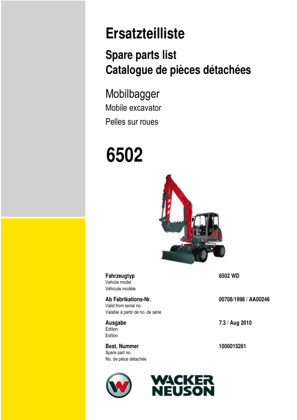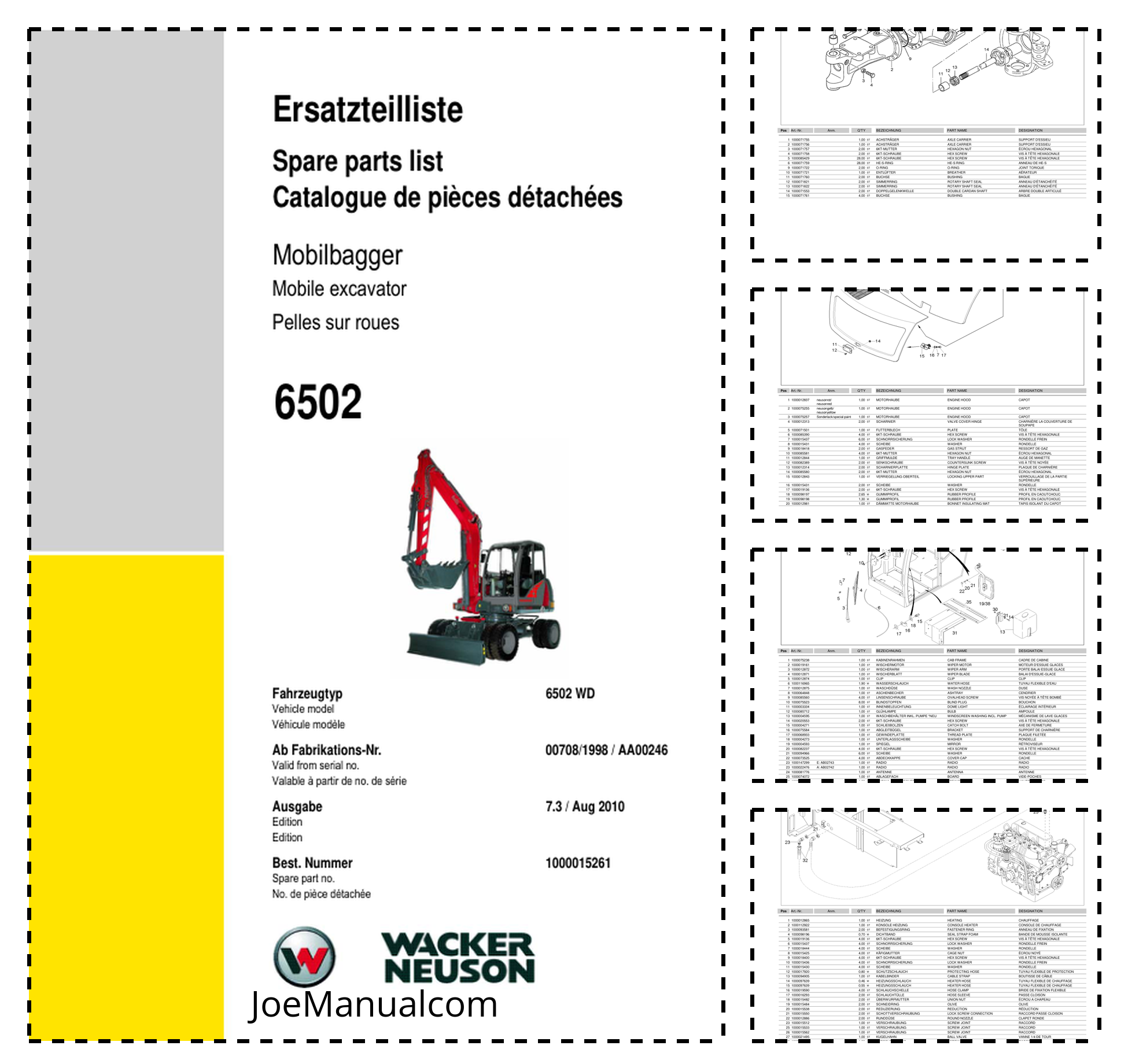 Wacker Neuson 6502 Mobile Excavator Parts Catalog AA00246 AA04981