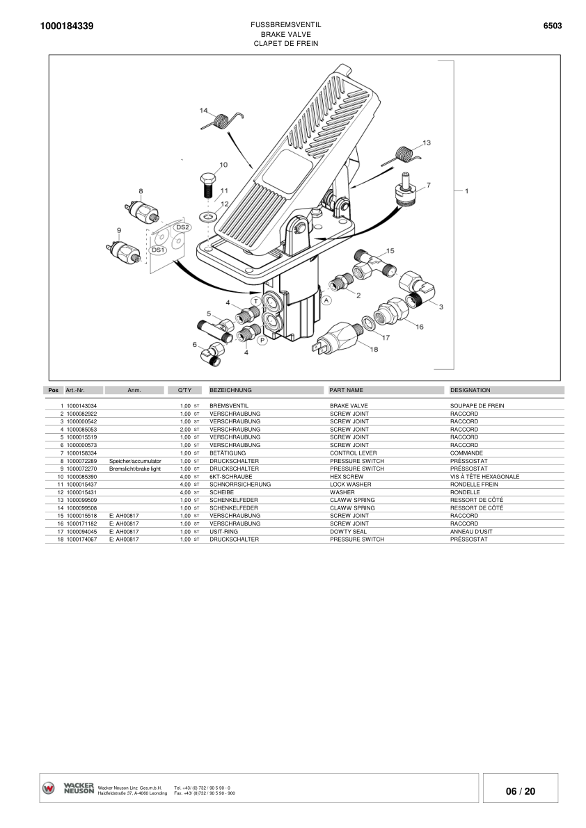 Wacker Neuson 6503 Mobile Excavator Parts Catalog AH00708