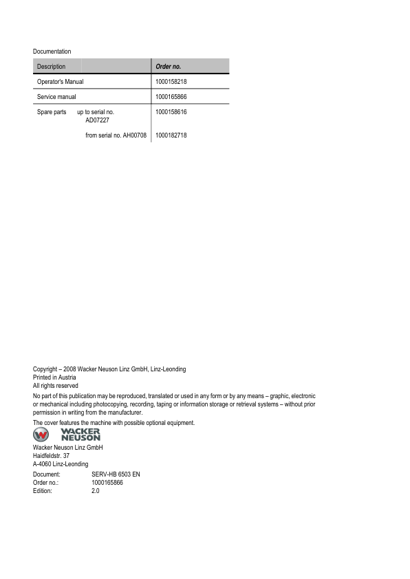 Wacker Neuson 6503 Mobile Excavator Service Manual