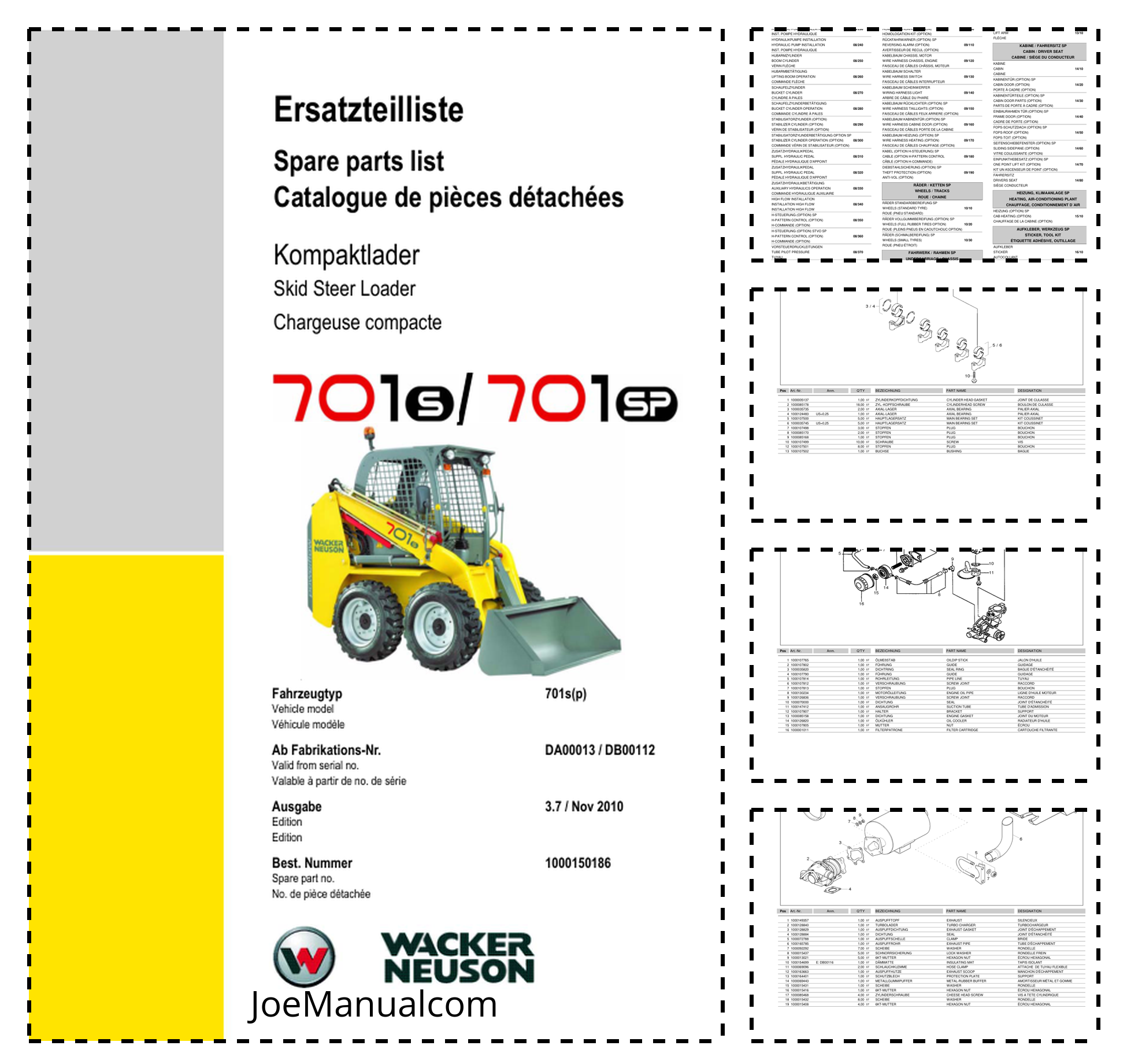 Wacker Neuson 701s 701sp Skid Steer Loader Parts Catalog Rev 3.7