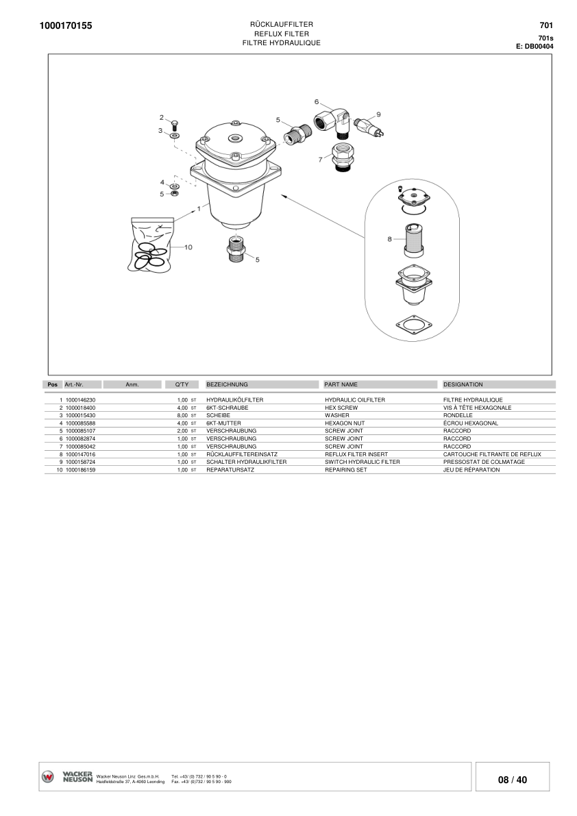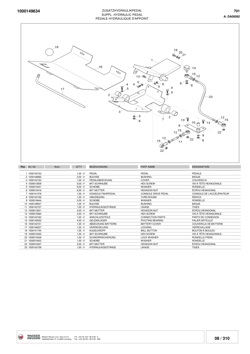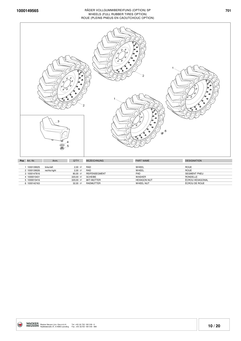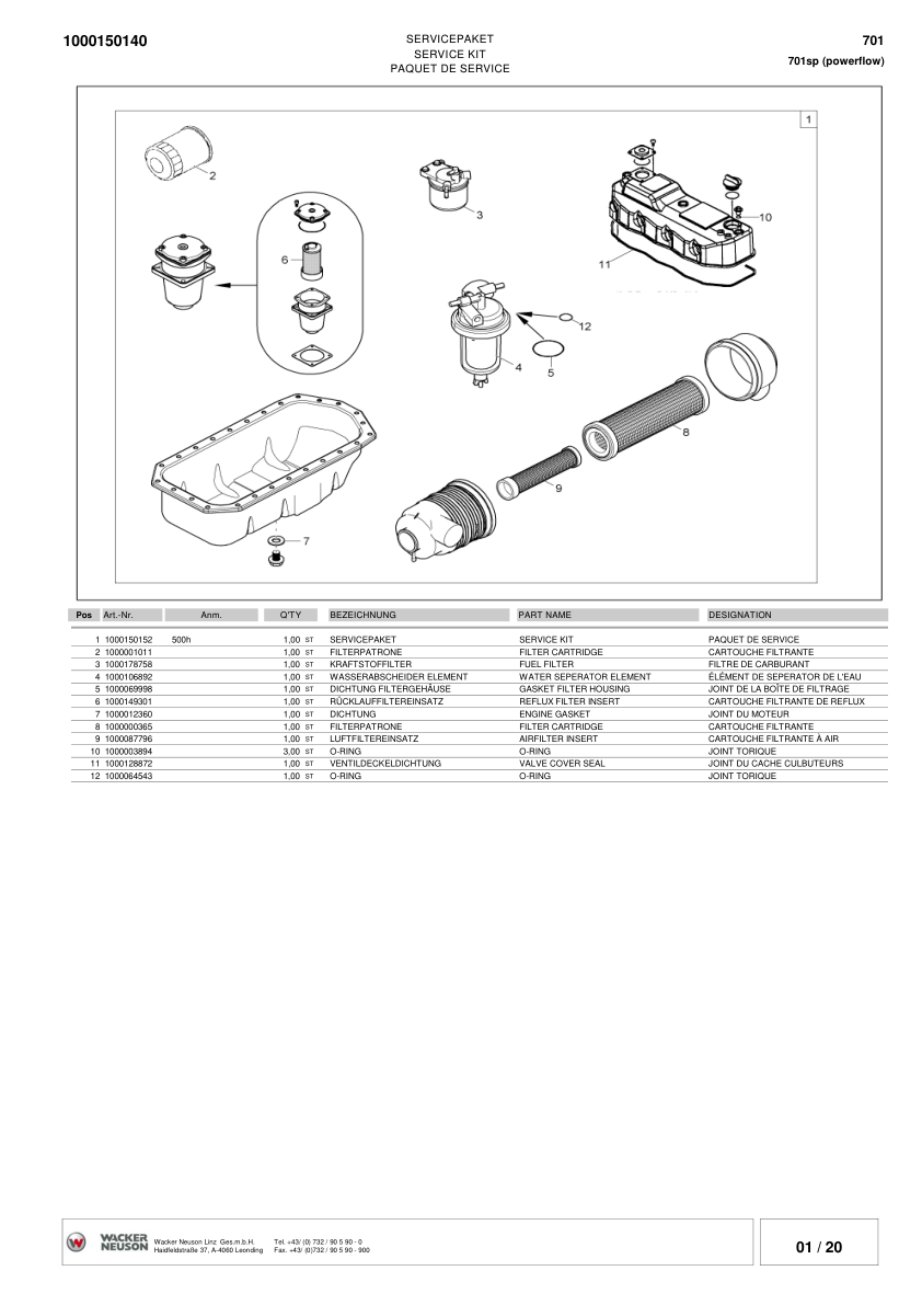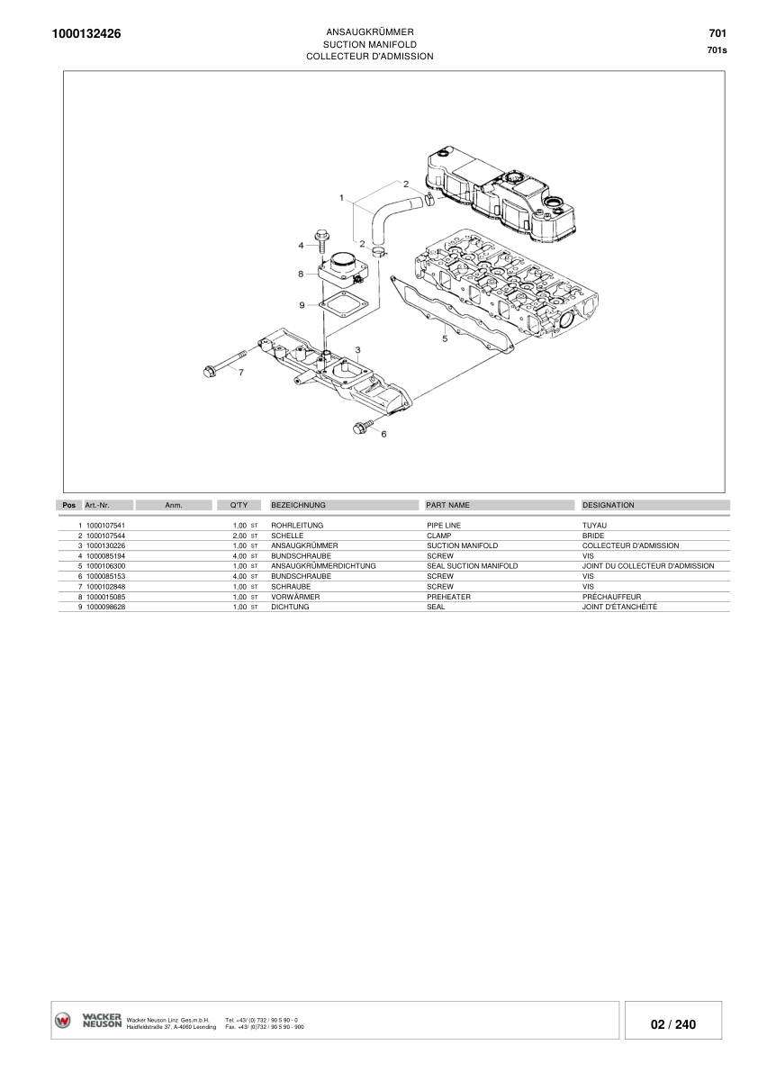 Wacker Neuson 701S SP Skid Steer Loader Parts Catalog SN from DA00013 DB00112 v3.5