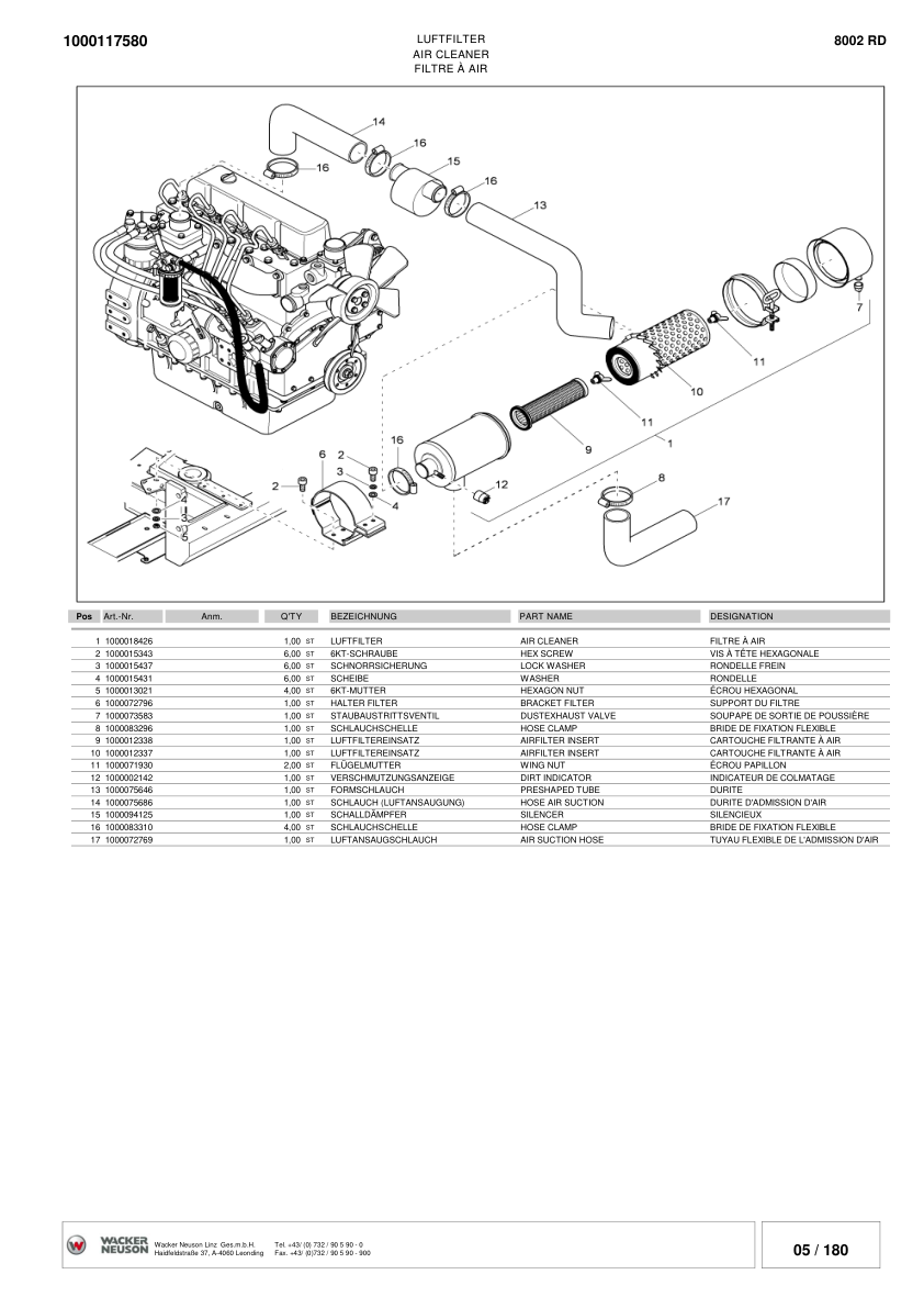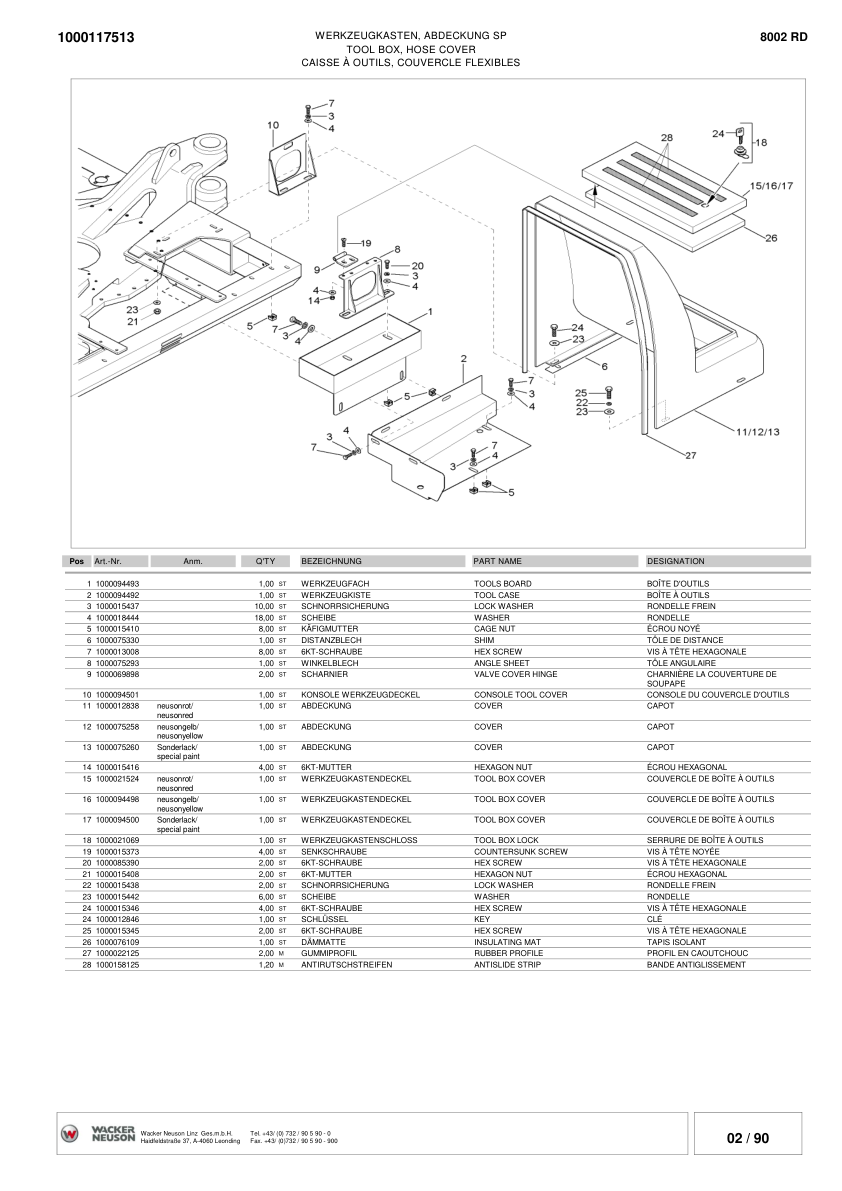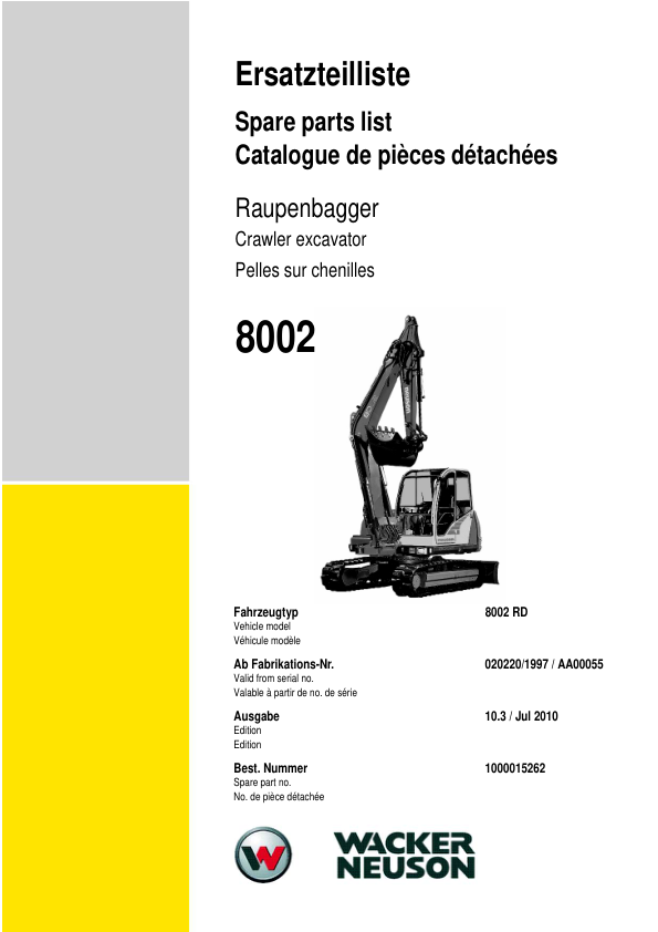 Wacker Neuson 8002 Track Excavator Parts Catalog AA00055 AA04980