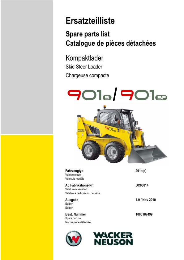 Wacker Neuson 901s 901sp Skid Steer Loader Parts Catalog Rev 1.9
