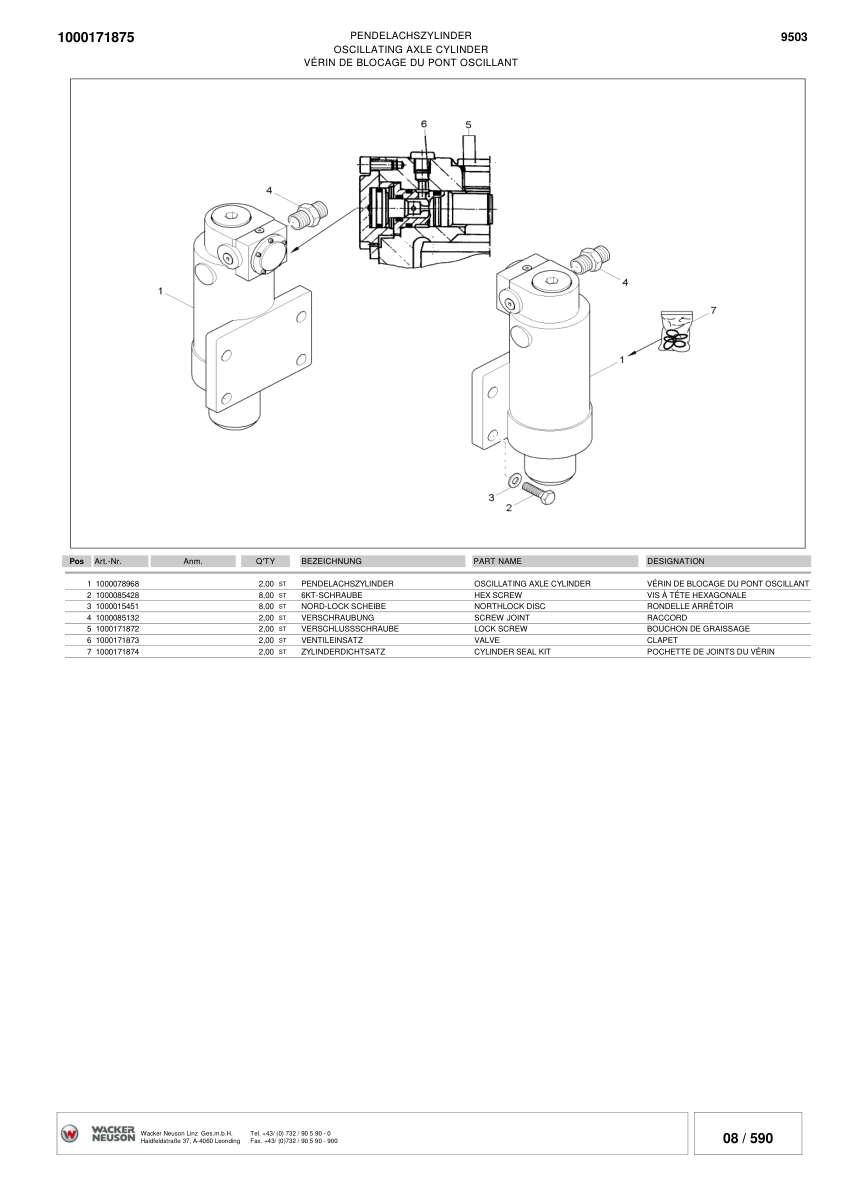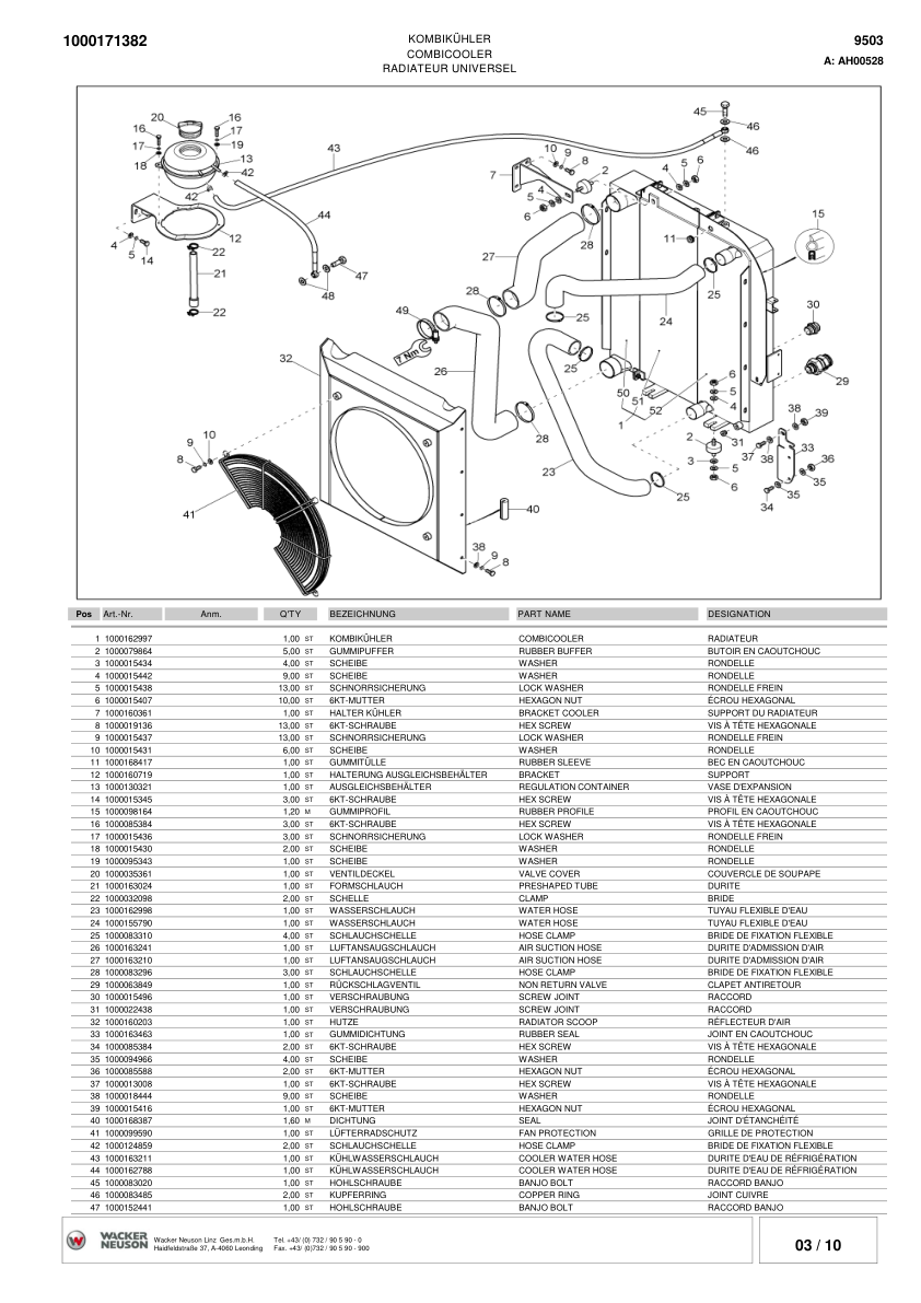 Wacker Neuson 9503 Mobile Excavator Parts Catalog AH00501