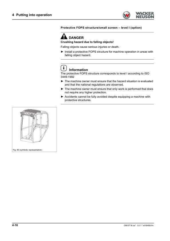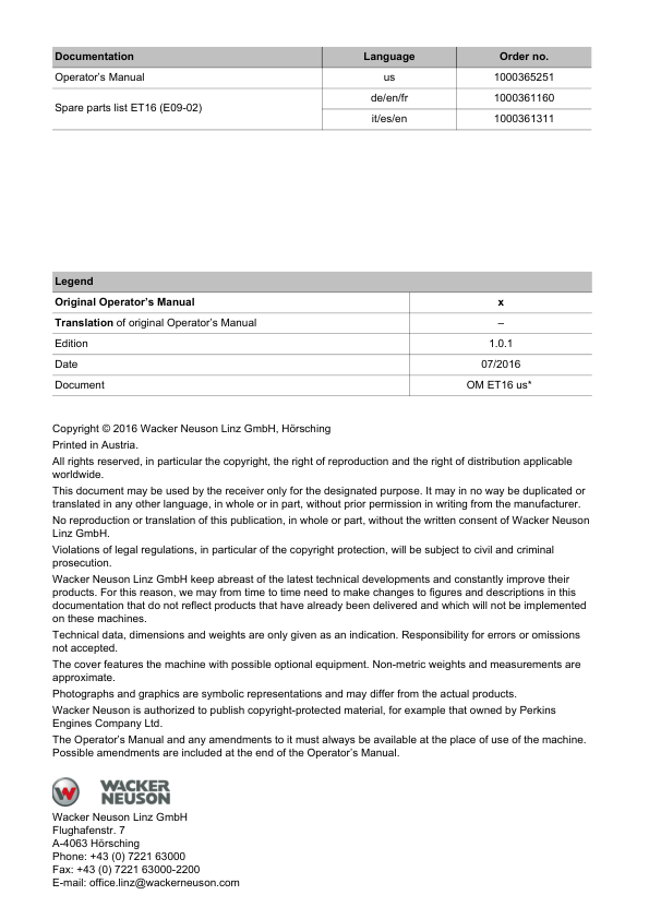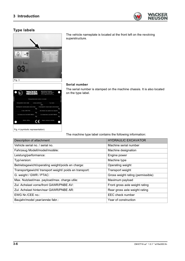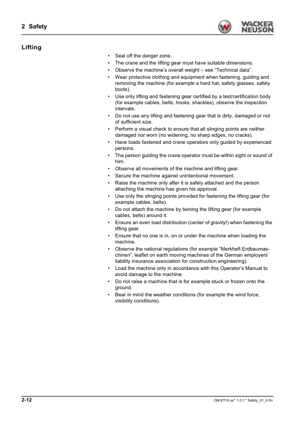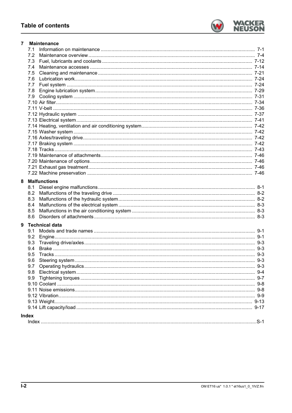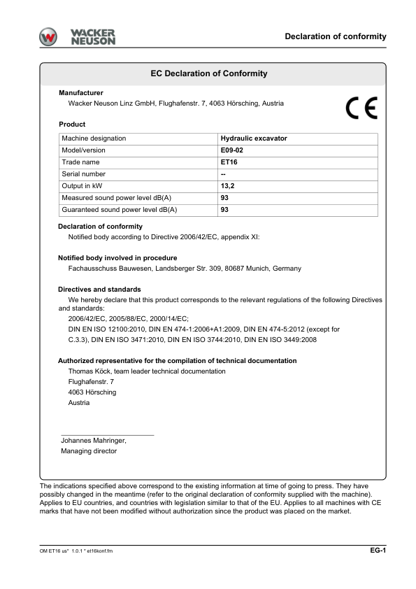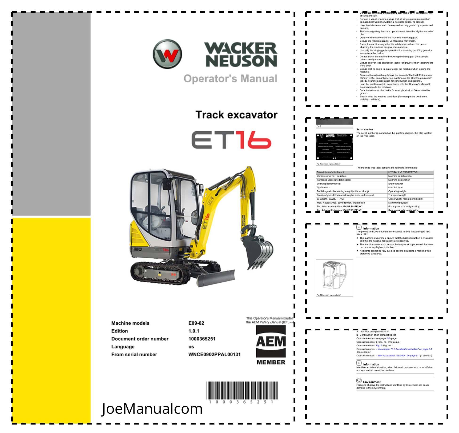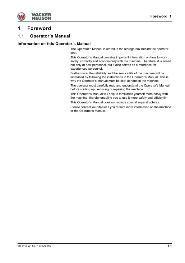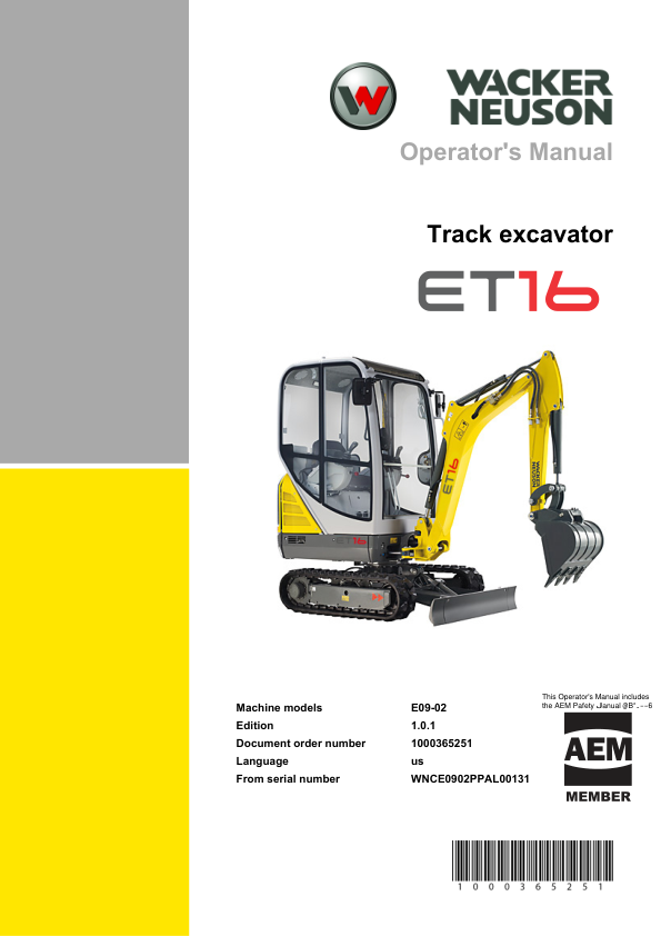 Wacker Neuson ET16 Mini Excavator Operators Manual