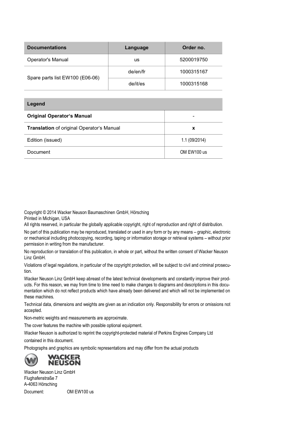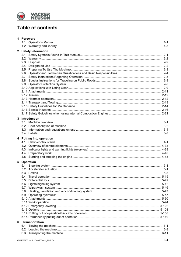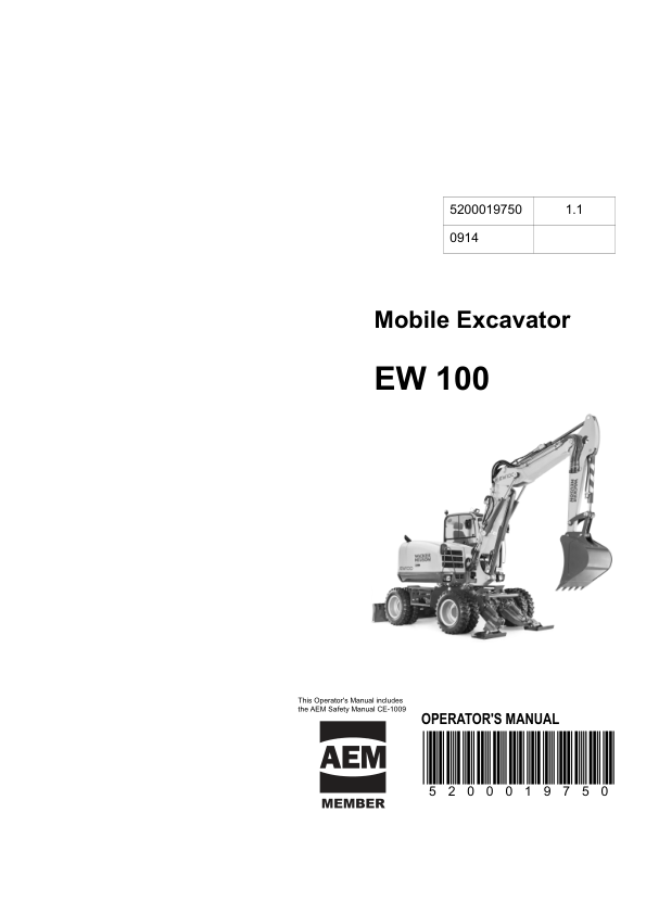 Wacker Neuson EW100 Mobile Excavator Operators Manual