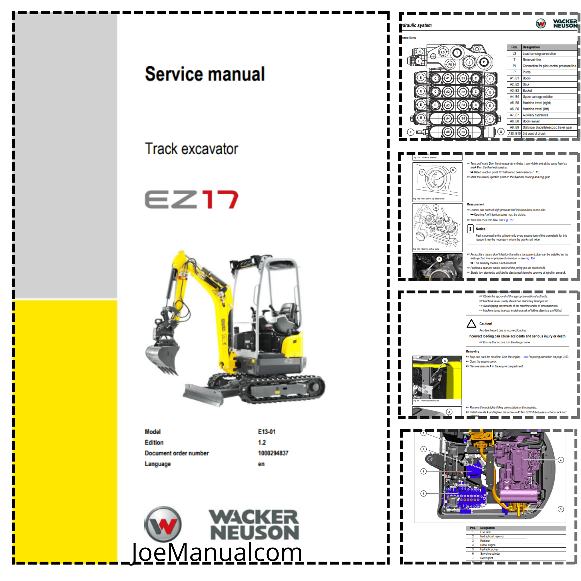 Wacker Neuson EZ17 Excavator Service Manual provides thorough guidance on maintaining and servicing the EZ17 model. It covers essential maintenance tasks, inspections, and adjustments for key systems, including the engine, hydraulics, and electrical components. The manual also includes technical specifications, service schedules, and detailed procedures to help ensure the excavator’s reliable and efficient operation. This manual is a vital resource for anyone responsible for the upkeep of the Wacker Neuson EZ17 excavator.
