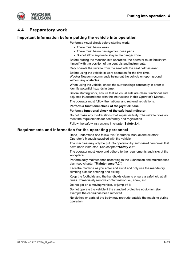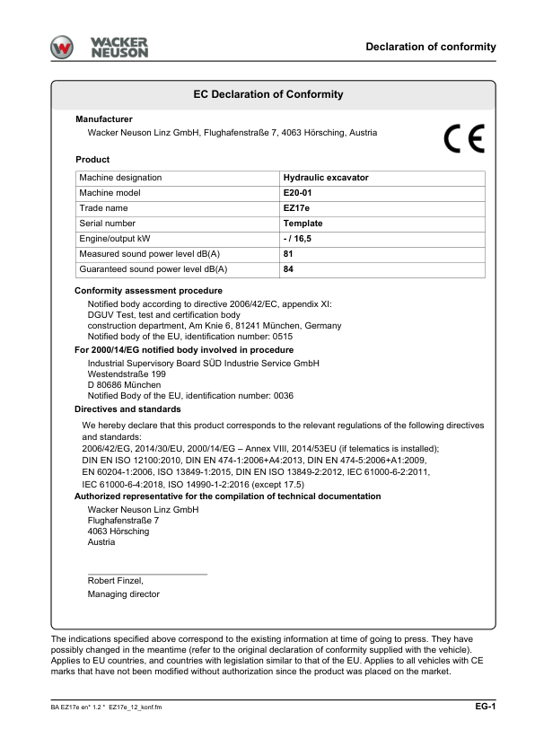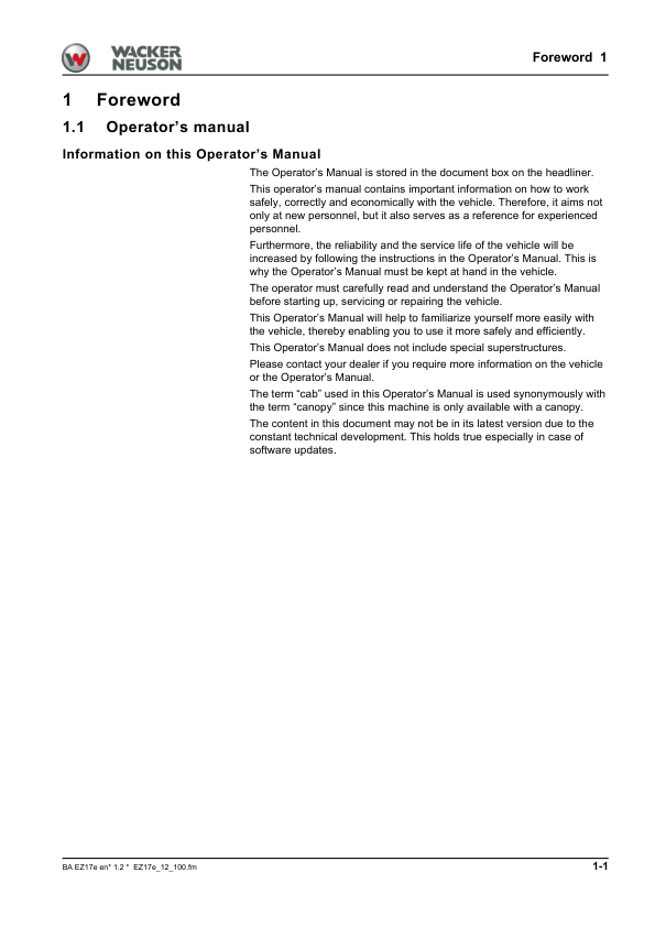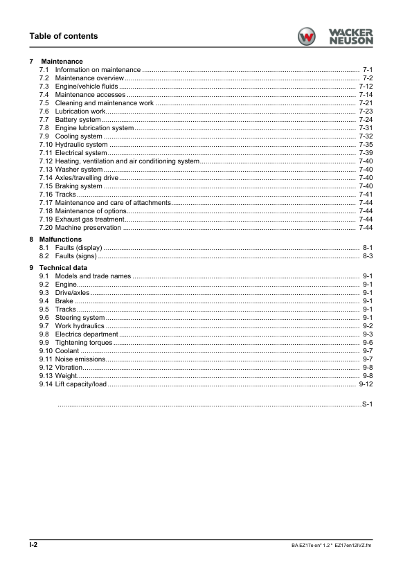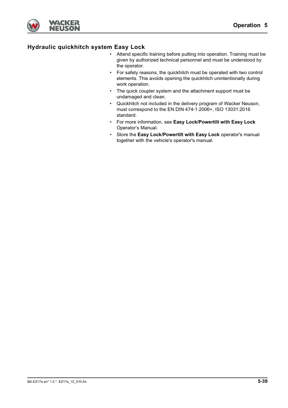 Wacker Neuson EZ17e Mini Excavator Operators Manual