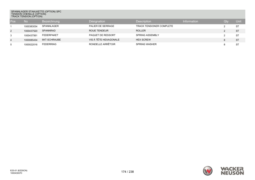 Wacker Neuson EZ20 Excavator Parts Manual