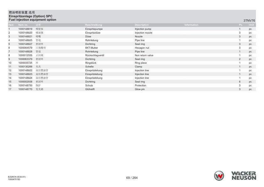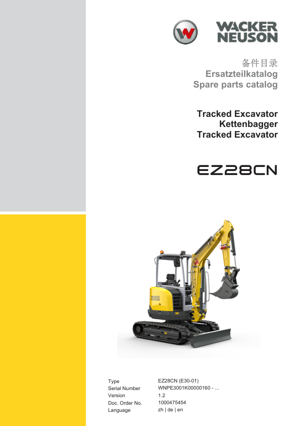 Wacker Neuson EZ28 Excavator Parts Manual