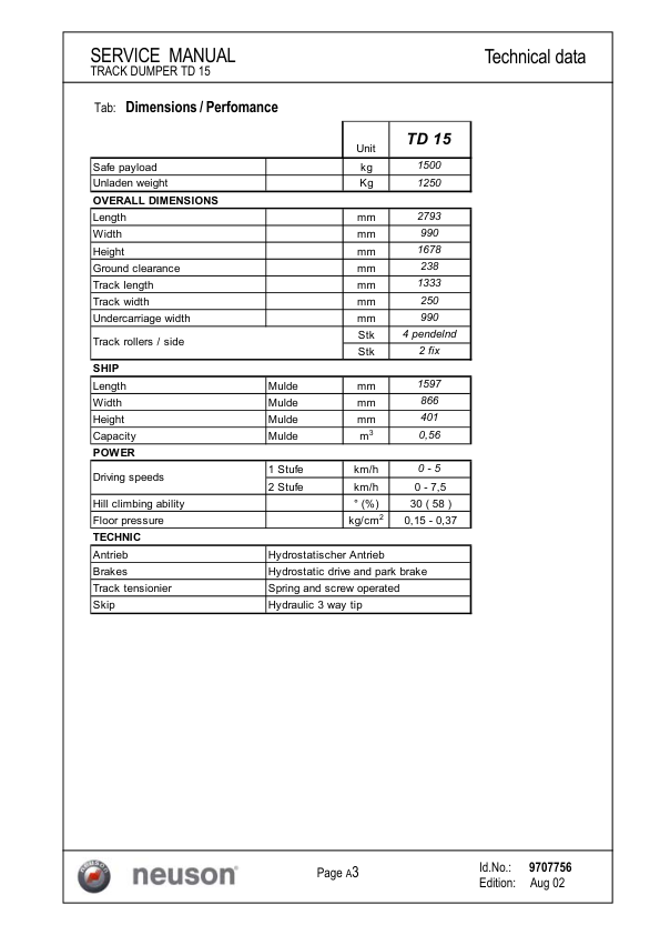 Be the first to review “Wacker Neuson TD15 Track Dumper Service Manual”