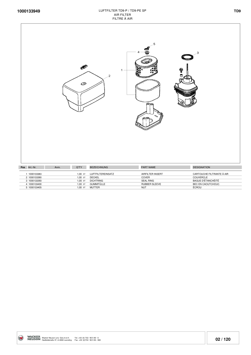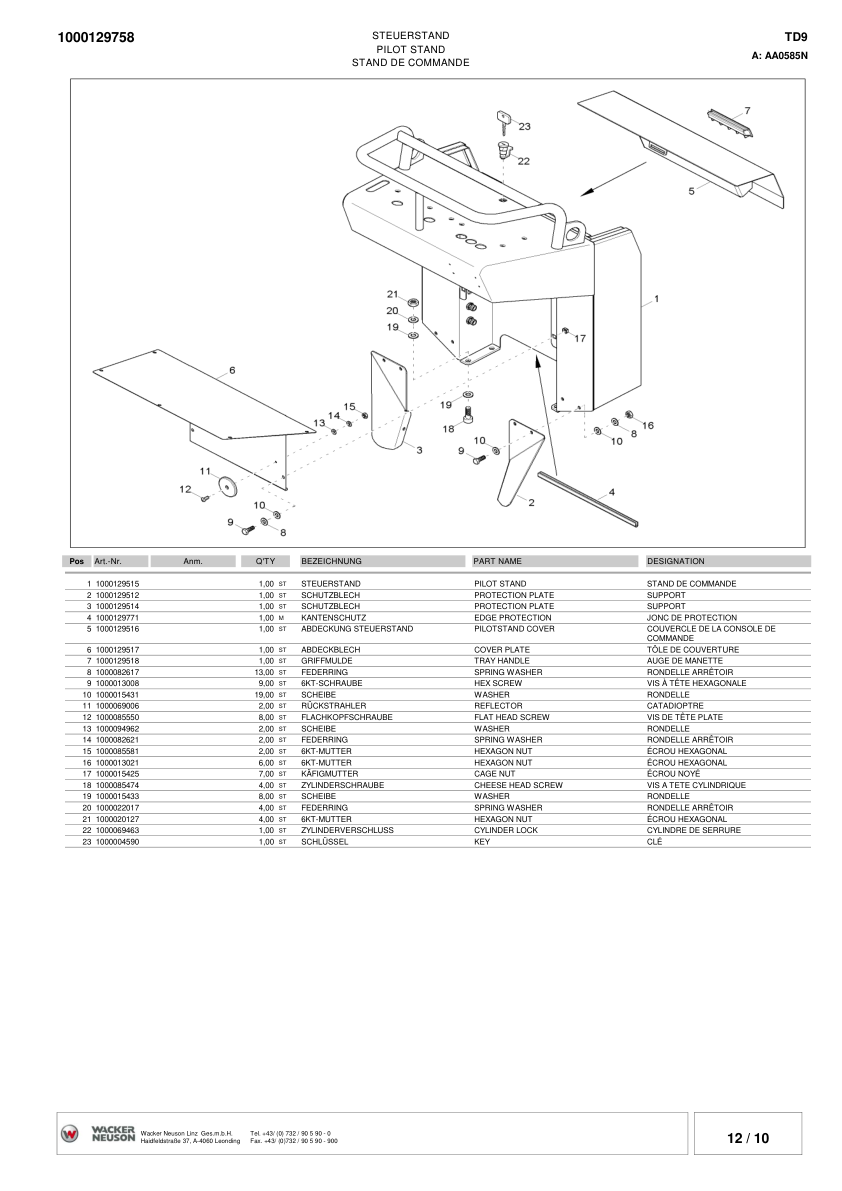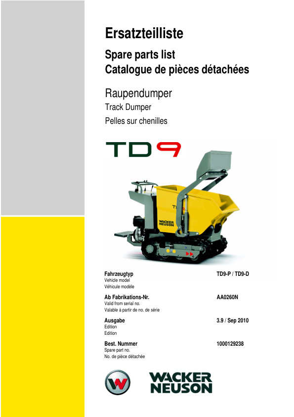 Wacker Neuson TD9 Dumper Parts Catalog
