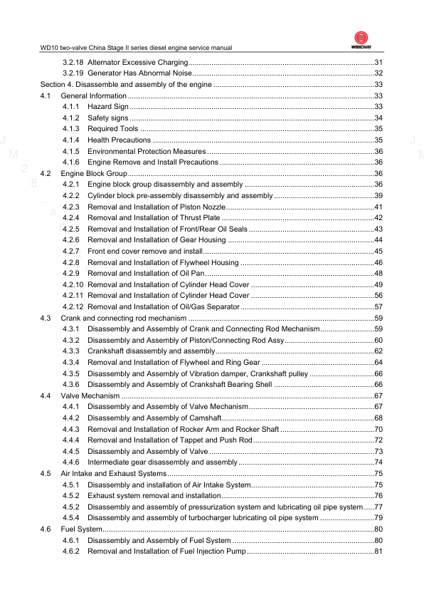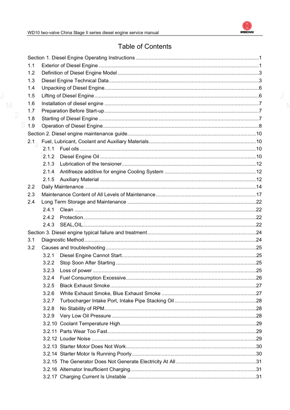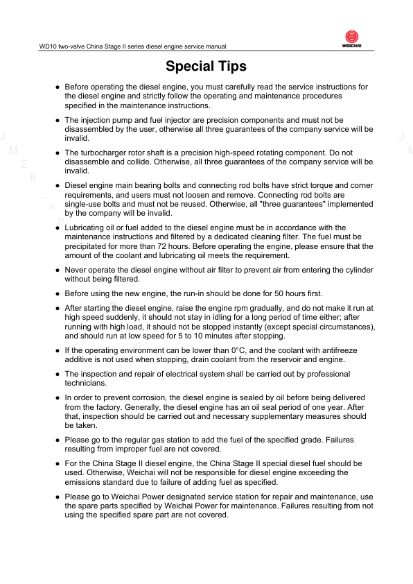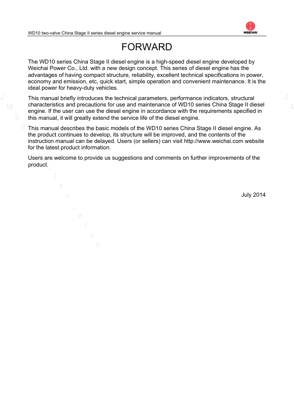 Weichai WD10 WP10 Diesel Engine Service Manual