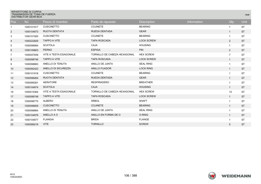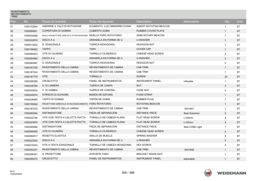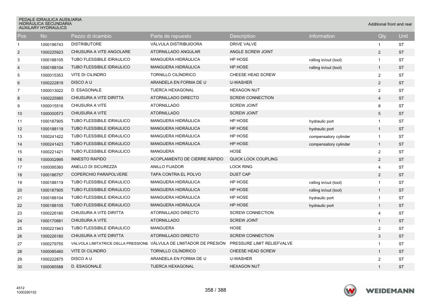 WEIDEMANN 4512CC40 Telehandler Parts Catalog v1.0