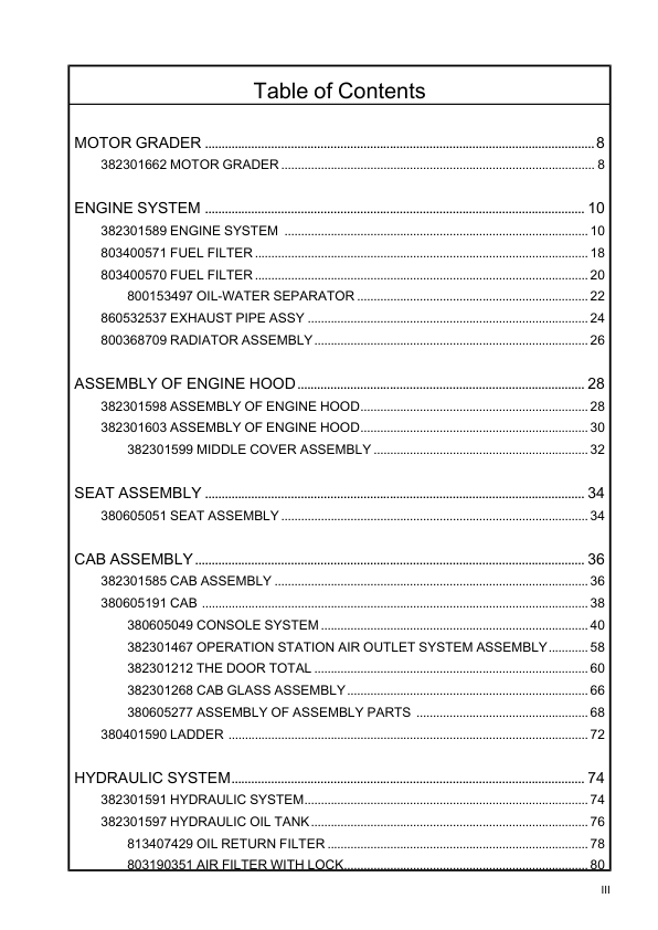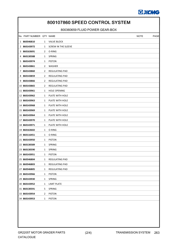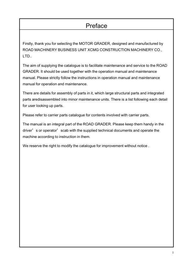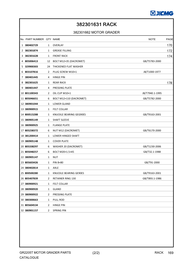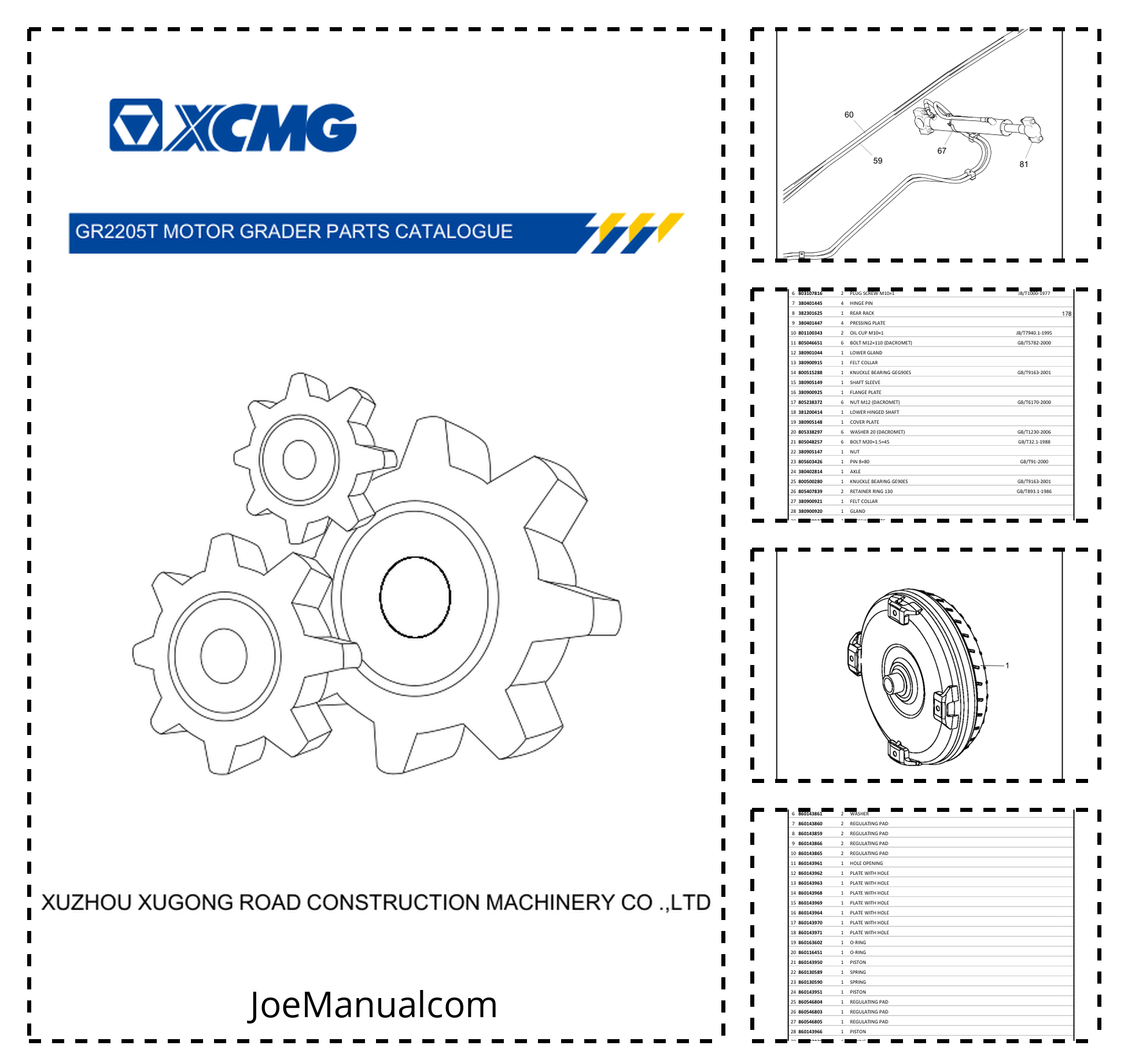 XCMG GR2205T Motor Grader Parts Catalog