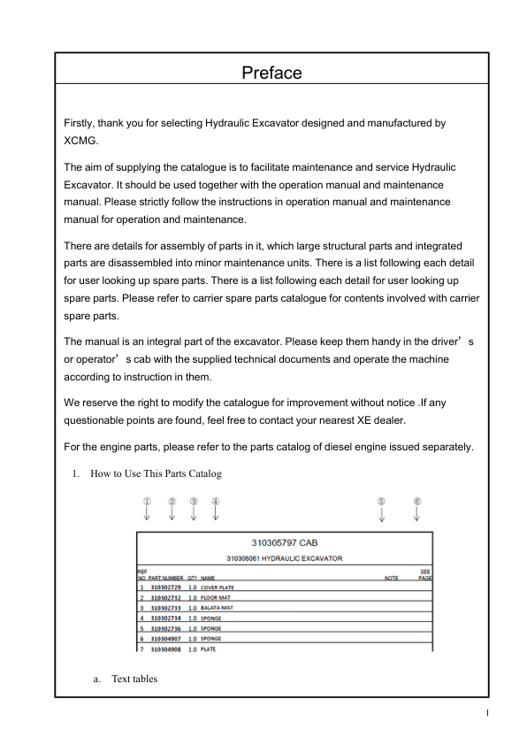 XCMG XE215C Excavator Parts Catalog