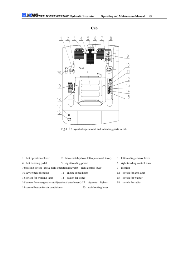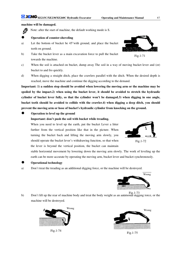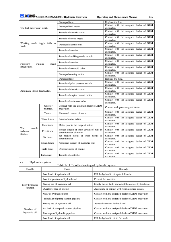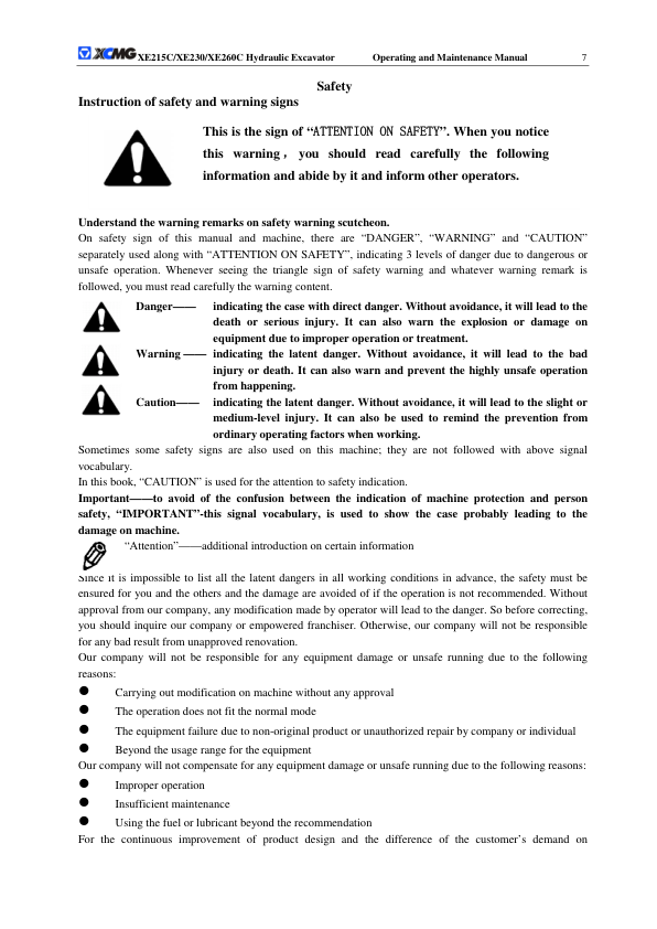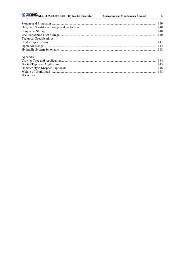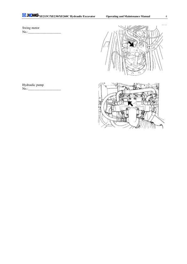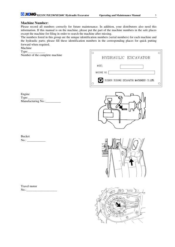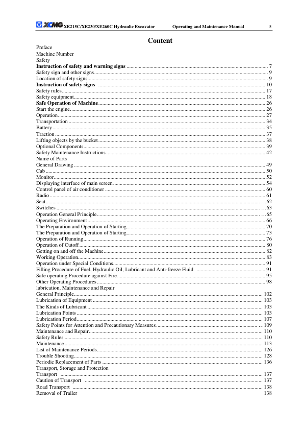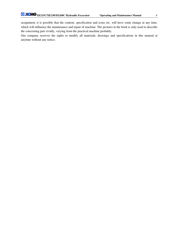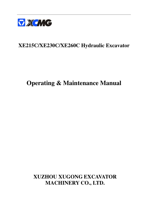 XCMG XE215C XE230C XE260C Excavators Operation and Maintenance Manual