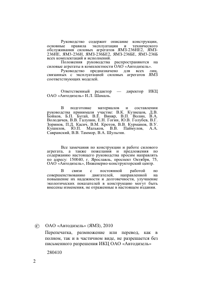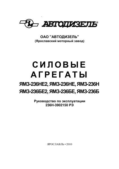 YaMZ 236N 236NE 236NE2 236B 236BE 236BE2 Engines Operators Manual