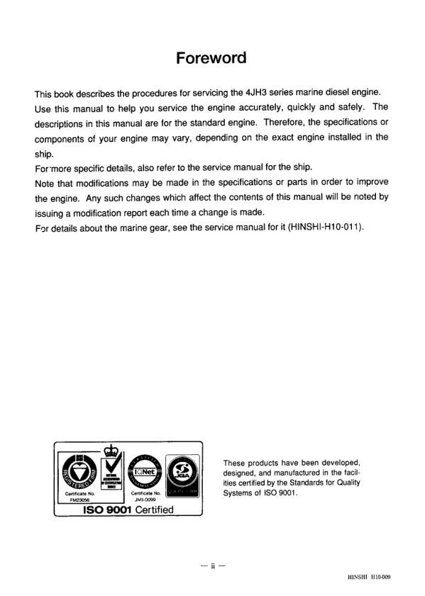 Yanmar 4JH3 Marine Diesel Engine Service Manual