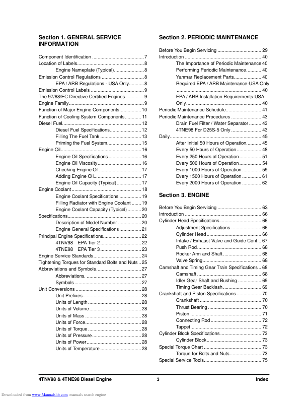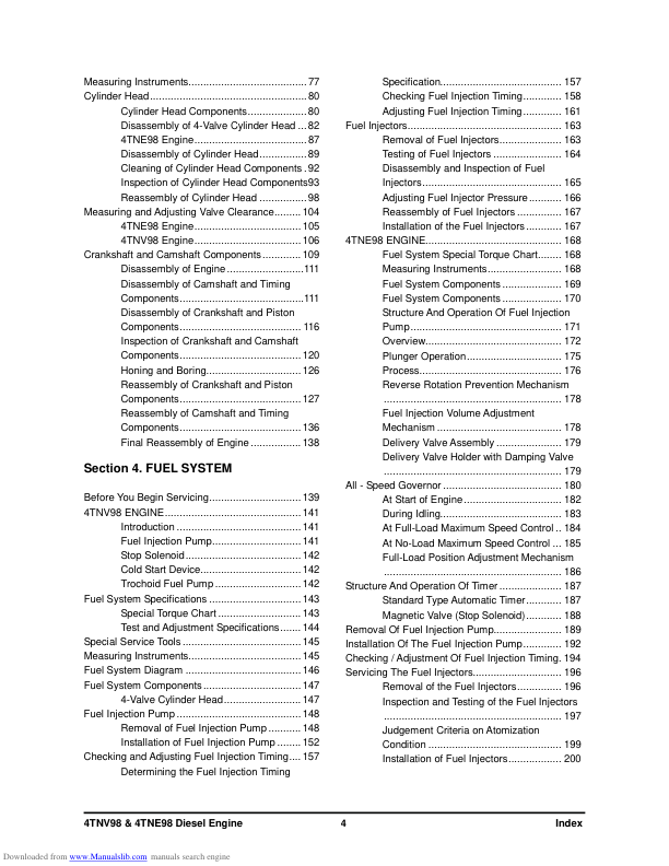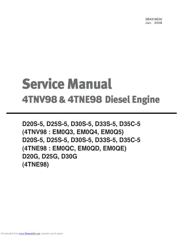Yanmar 4 TNV98 4 TNE98 Diesel Engine Service Manual is your comprehensive guide for maintaining and repairing your Yanmar diesel engine. This manual provides detailed instructions, diagrams, and specifications necessary for proper servicing, troubleshooting, and overhaul procedures. Yanmar 4 TNV98 4 TNE98 Diesel Engine Service Manual offers essential technical information for mechanics and technicians working on these specific Yanmar engine models. It covers a wide range of topics from basic maintenance to complete engine disassembly and reassembly, ensuring accurate and efficient repairs.