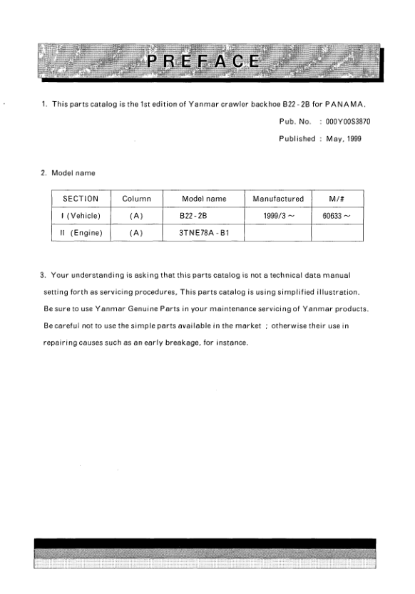 Yanmar B22-2B Excavator Parts Catalog for Panama