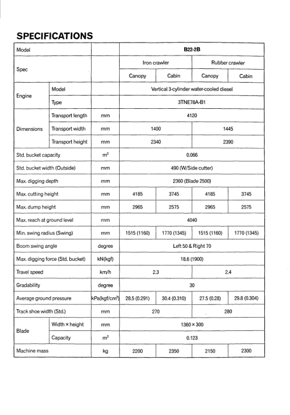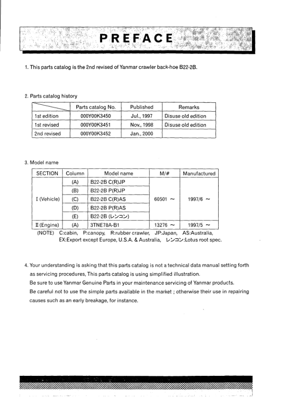 Yanmar B22-2B Excavator Parts Catalog