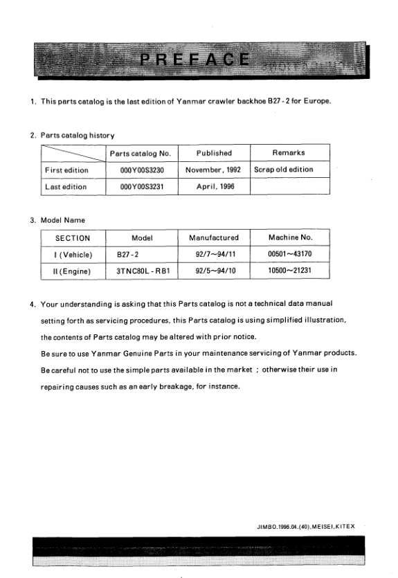 Yanmar B27-2 Excavator Parts Catalog for Europe