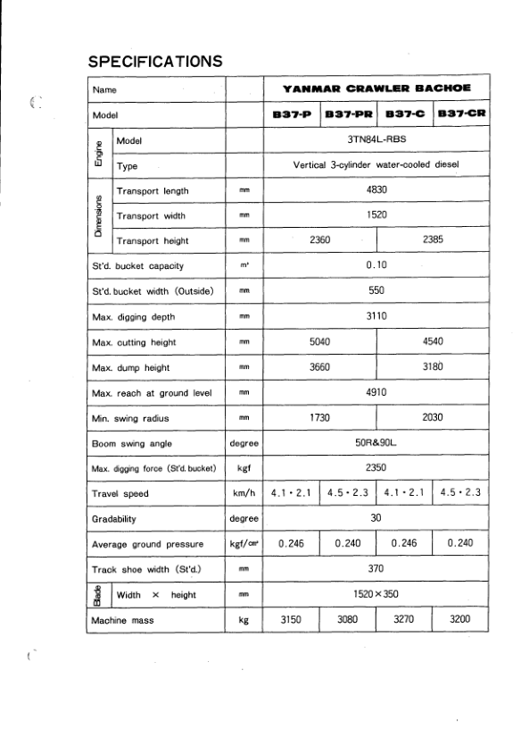 Yanmar B37 Excavator Parts Catalog and Wiring Diagram for England Australia