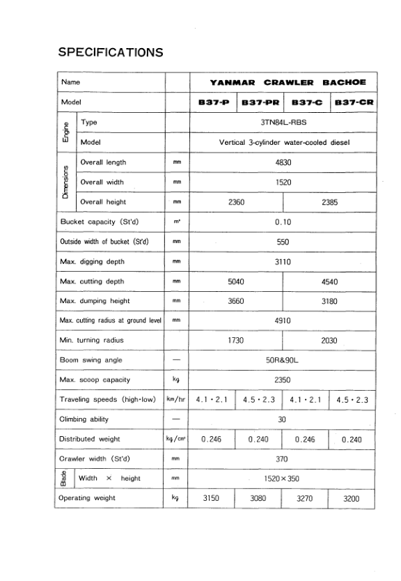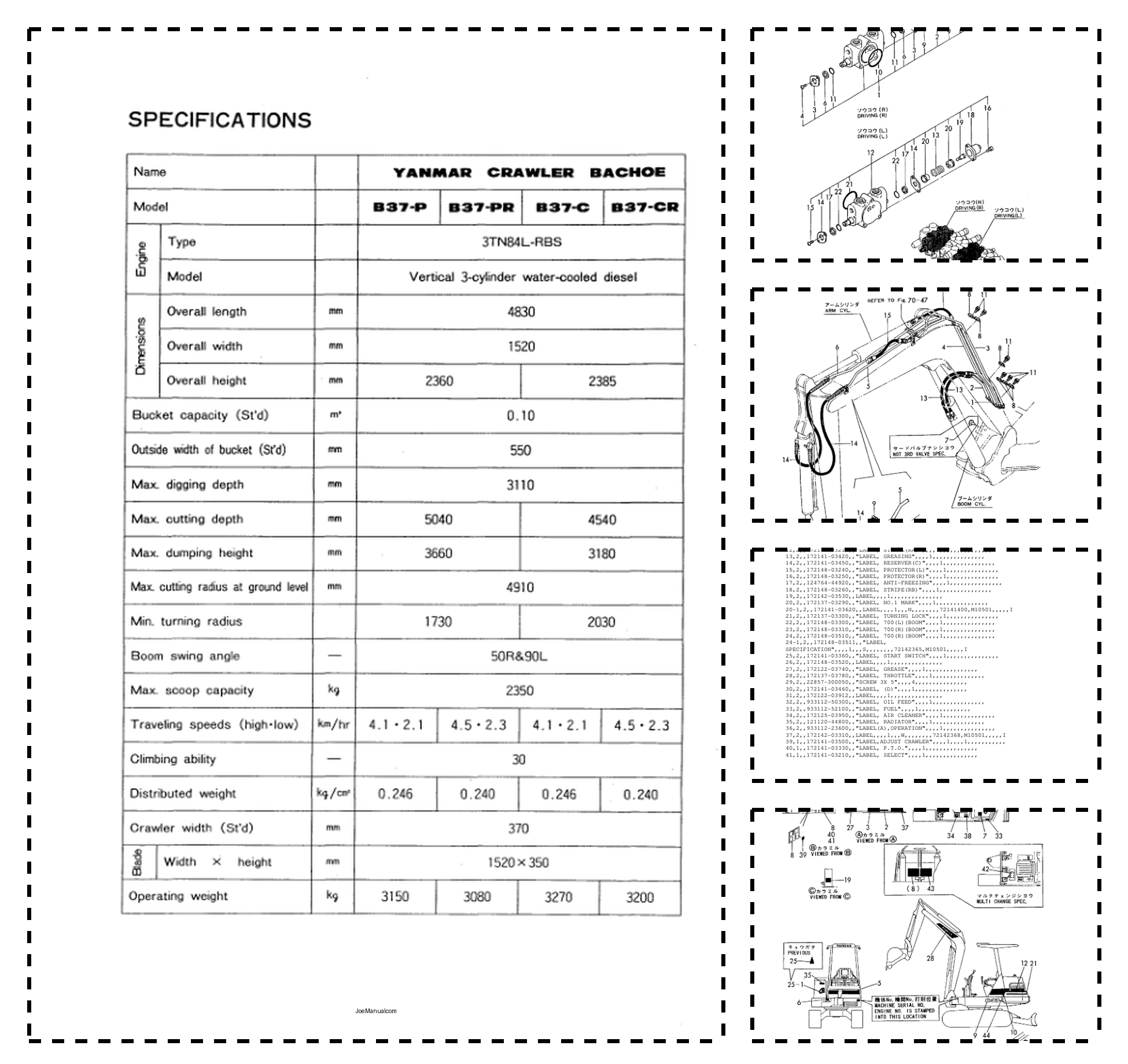 Yanmar B37-P B37-PR B37-C B37-CR Excavator Parts Catalog and Wiring Diagram
